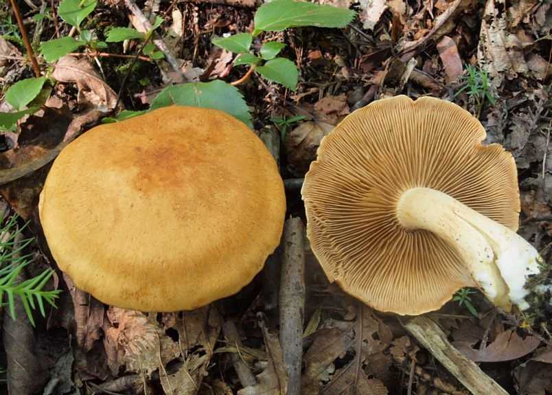 〇印は食用にできるキノコ。×印は有毒キノコ、もしくは有毒の疑いのあるキノコ。▲印は生で食べたり、アルコール類と一緒に食べると中毒するキノコ。□印は食毒が不明、もしくは食用にされないキノコ。アオネノヤマイグチ □食毒不明、もしくは食用にされない イグチ科 冷涼な広葉樹林でばかり見かける謎のヤマイグチ属菌。 以前はアオネノヤマイグチとして掲載していましたが、疑問を感じて掲載を一時中断。 その後別種であると確信できたので「不明種扱い」で掲載することにしました。 ネット上でも発見されている方は多いようですが正体が分かりません。 周囲の落葉を見た感じだとカバノキ属の菌根菌ではあるようです。ネット上では私と同じように本種をアオネノヤマイグチとして掲載しているサイトも存在します。 しかしより黒色が強い種をアオネとしているサイトも存在し、外見が安定していません。 変色性による見分け方に関しても何か情報がバラバラなんですよね。不明種ですので当然ながら食毒不明です。 近縁種がほぼほぼ無毒なので食べられるかも知れませんが、安易に食すべきではないでしょう。 ただ見た感じ無印ヤマイグチと混同されて食べてる人が居そうな気もしますけど。アイカシワギタケ □食毒不明、もしくは食用にされない フウセンタケ科発生:夏~秋、アカマツ、コナラ林下に単性。傘:半球形→饅頭形→平らにひらき、湿時は弱粘性で淡青紫色地に青紫色繊維を密布。縁は幼時内側に巻く。ひだ:湾生しやや疎、暗青紫~錆褐色。柄:逆棍棒状で中実。表面は中位にある暗紫色のクモの巣状のつばより上方は藤色、下方は淡色。肉:断面は淡く赤変し、のち赤褐色食:不明イロガワリシロハツ □食毒不明、もしくは食用にされない ベニタケ科夏から秋にかけてマツ類やナラ類の混ざった林内地上に群生する。外見上は、シロハツやシロハツモドキなどに似ているが、きのこを割ってなめてみると強い辛みがある。[特 徴] 傘は初めまんじゅう形で開くと浅いじょうご形になり、表面の色は白色。きのこが古くなると汚黄色に変わる。ひだは白色で傘と同様古くなると褐色のしみを生ずる。 並び方は密で柄に直生する。柄は傘とほぼ同色で傷つけると黄褐色に変色する。ウスイロカラチチタケ □食毒不明、もしくは食用にされない ベニタケ科 夏~秋、広葉樹林内地上に発生する。カサは径3~10cmくらいで最初は中央部がくぼんだ饅頭型で開くとじょうご型になる。カサ表面は乾いているときは粉状で湿時粘性がある。灰黄褐色~灰褐色の地に黄土色のもようがある。ヒダはやや密で帯肉桂色柄はカサよりも淡色。内部の肉は白色で紅変性がある。傷つけば白色の乳液を分泌し、乾燥すると赤くなり、辛味がある。ガンタケ ▲印は生で食べると中毒するキノコ テングタケ科夏~秋、林内の地上に発生。中型。傘は赤褐色で多数のいぼを付着。ひだは白色、のち赤褐色のしみ。柄の根元は膨らみ、つぼの破片が環状に付着。肉は傷つくと次第に赤褐色に変色する。食。生食は毒。テングタケと酷似していますが、これでも食菌です。でも赤字です。 本種は食べられるのですが、生食だと結構激しい中毒症状を起こします。 また微量なのですが、アマトキシン等致命的な毒性タンパクも含みます。 少量食べる分には影響は無いでしょうが、無理に食べる必要も無いと個人的には思いますね。ケシロハツモドキ □食用不適・食用にされない ベニタケ科夏~秋、ナラ・カシ・シイ林、マツ混生林に発生。傘は中~大型、外観はケシロハツに似る。肉は硬く白いが切断面は黄色みを帯びる。乳液は白色で多く、肉と同様の変色をする。非常に辛い。ひだはやや密、クリーム色。食用不適。スミゾメヤマイグチ □食毒不明、もしくは食用にされない イグチ科夏~秋(主に初夏)、広葉樹林または針広混生林のシデ類の樹下、あるいはその付近に発生する。中型。イロガワリヤマグチによく似ているが、赤変性が弱く、胞子がやや大型で、傘の表皮の構造が異なる。基本的には図鑑にもあるように食毒不明としたいところなのですが、可食だと言うウワサも聞きます。 まぁ黒くなると言う結構エグい性質もありますし、食用価値は疑問ですけどね。コスリコギタケ □食毒不明、もしくは食用にされない シロソウメンタケ科夏~秋に各種の林内地上に群生することが多い。通常、子実体は単一の長い棍棒形で先端は鈍頭。やや扁平になり、淡い飴色(淡黄土色)。ツチカブリ □食毒不明、もしくは食用にされない ベニタケ科夏~秋、広葉樹、マツなどの林に発生。傘は中~大型、表面は白色~類白色、時に褐色のしみや小じわをつける。乳液は白色で多く変色せず、非常に辛い。ひだは幅狭く、極めて密、しばしば分岐し、成熟するとクリーム色になる。柄はほぼ白色。類似種に、乳液が灰緑色に変色するアオイゾメツチカブリや、大型でひだが粗いツチカブリモドキがある。液を取り去れば食べられると聞きますが、一応食不適or