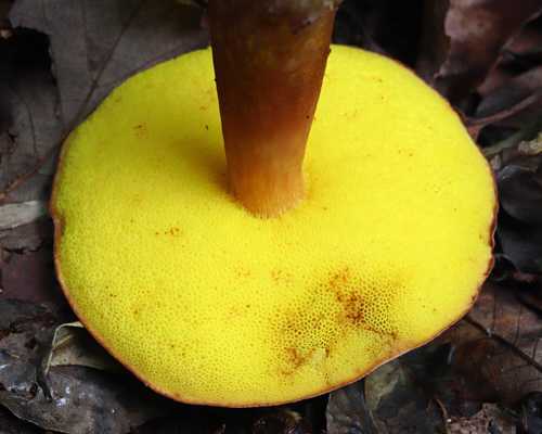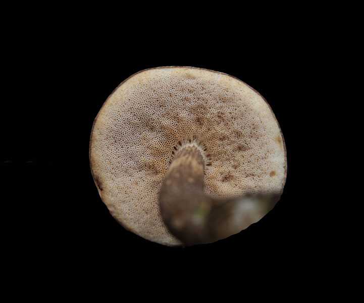 管孔は柄に対して直生から上生で乳白色から黄土色へやがて黄土褐色となる。