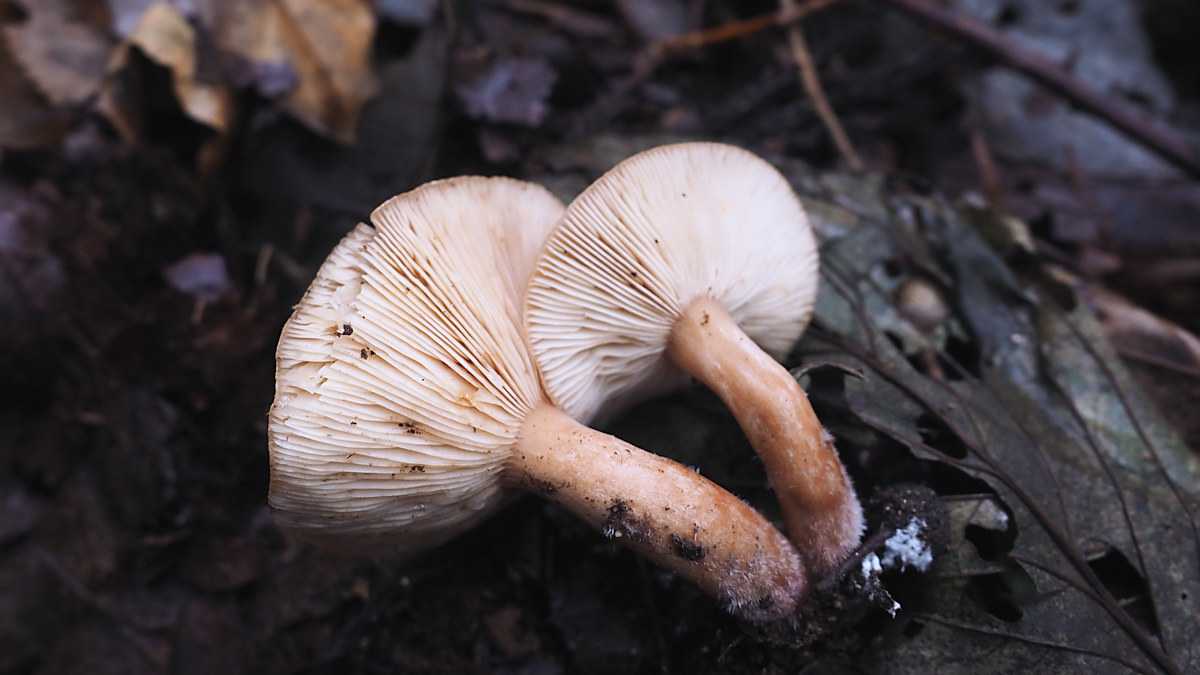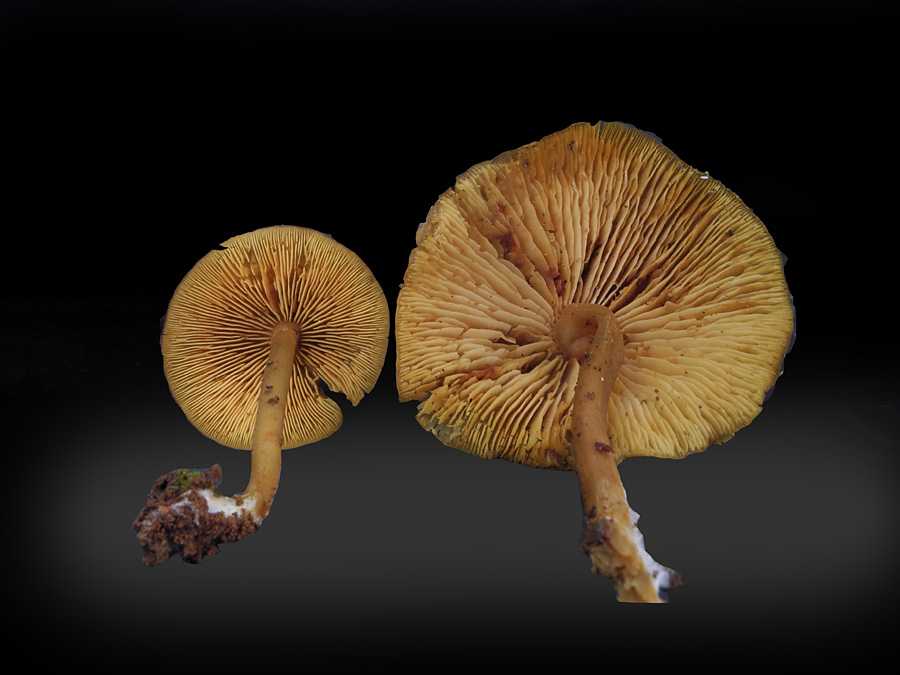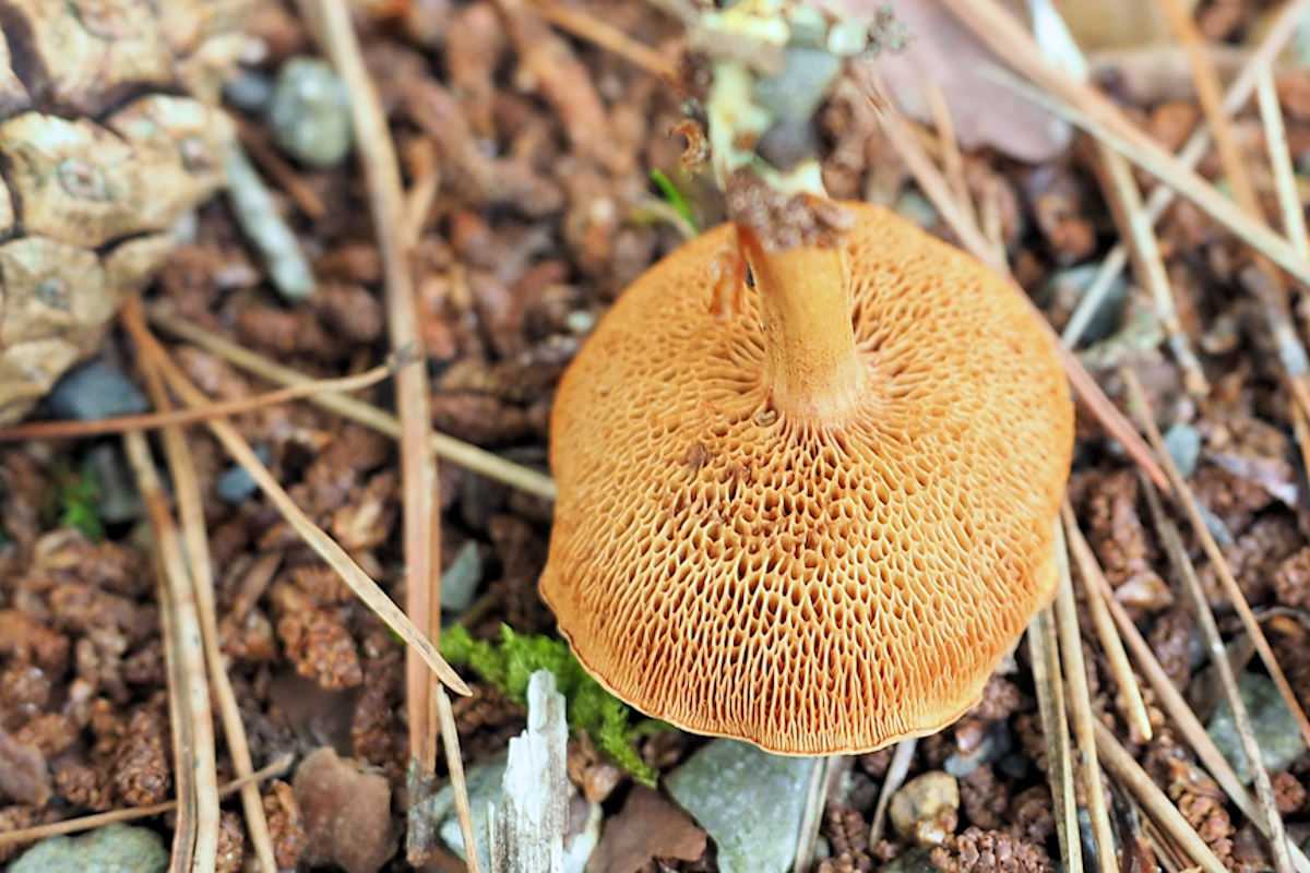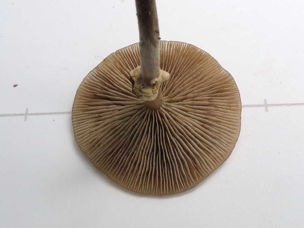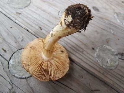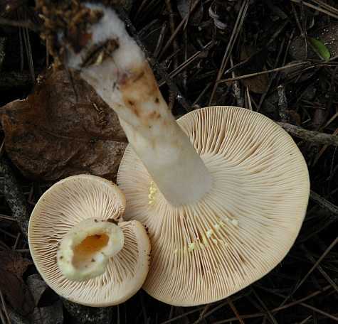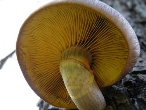 ひだは離生きる~垂生ぎみ、黄土色、傷つくと桃色がかった褐色になる。