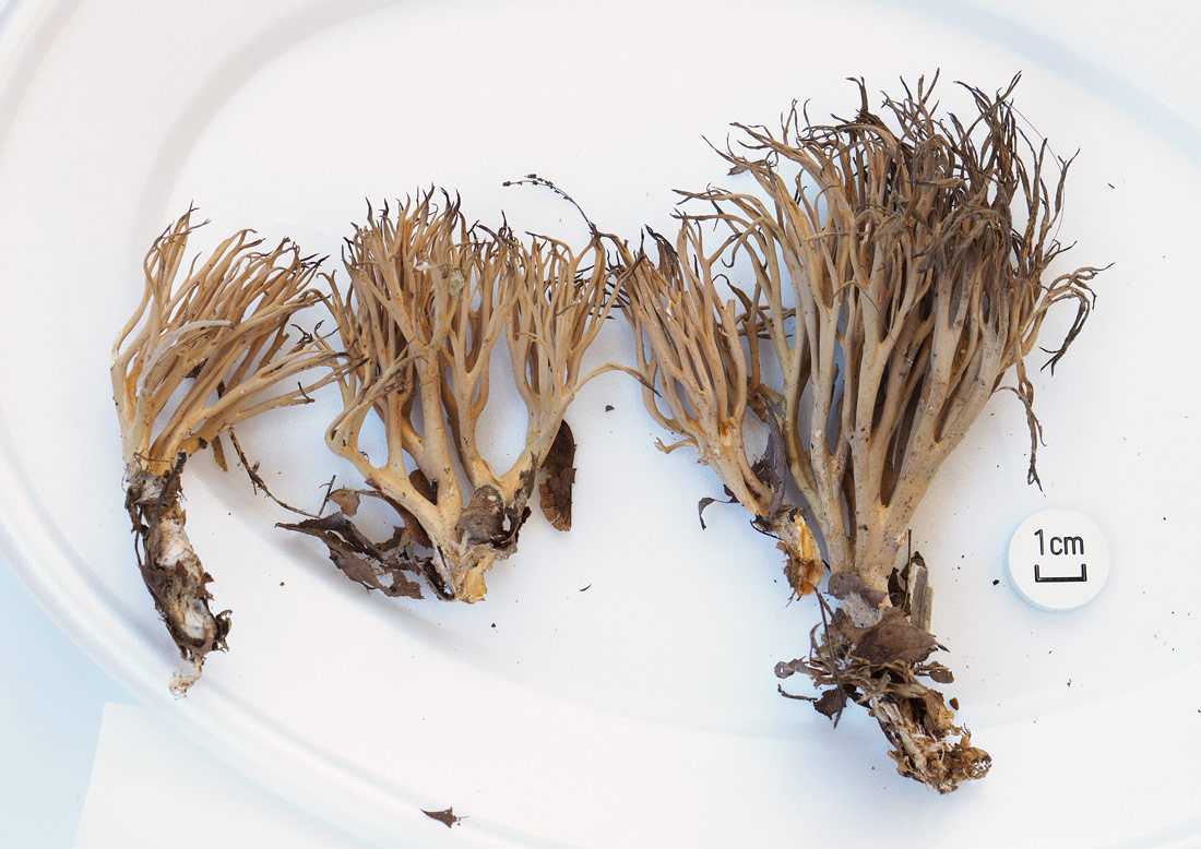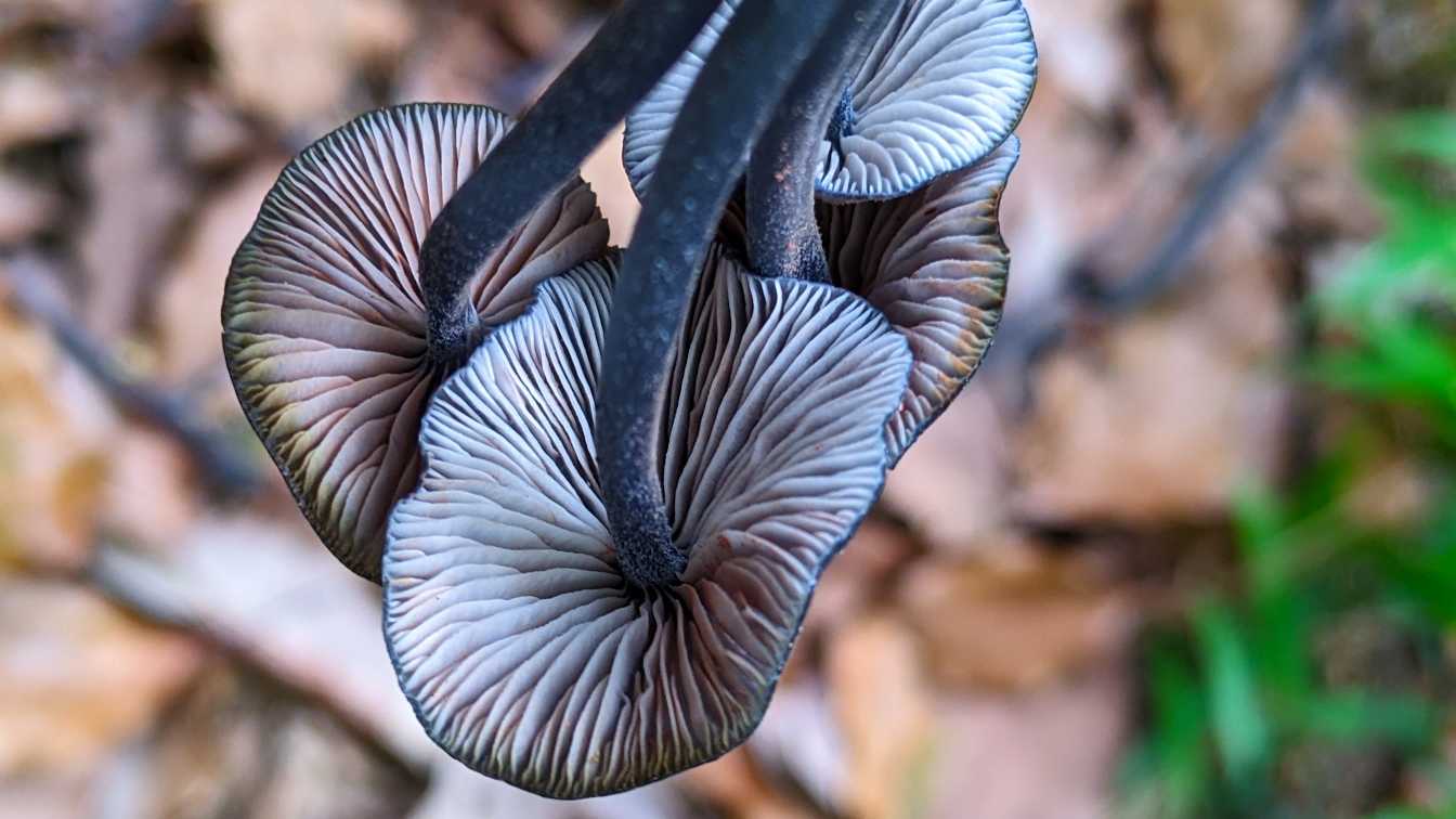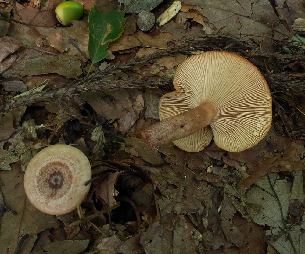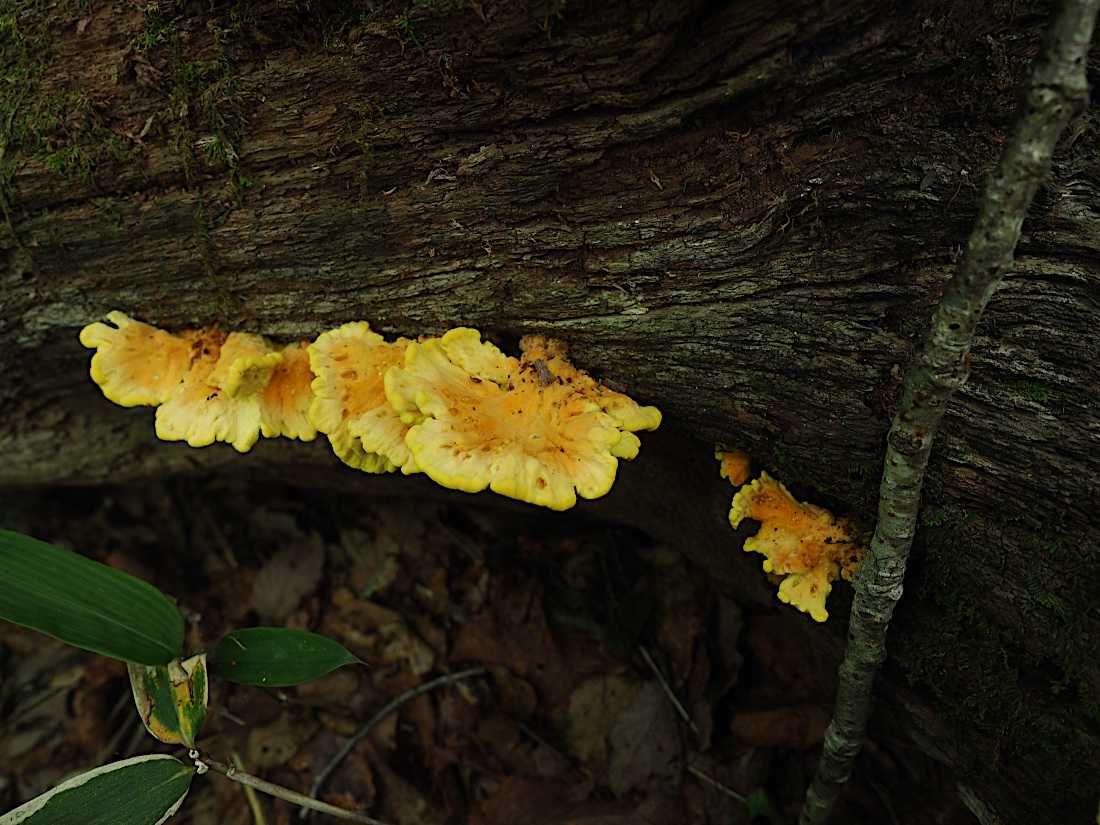 ひだは離生きる~垂生ぎみ、黄土色、傷つくと桃色がかった褐色になる。
