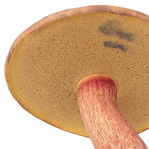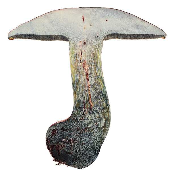 柄の根もとはほてい様のお腹のようによくふくらみます。 肉は強い青変性があります。 イグチのなかまとしてはスポンジの長さが短いのが特徴です。