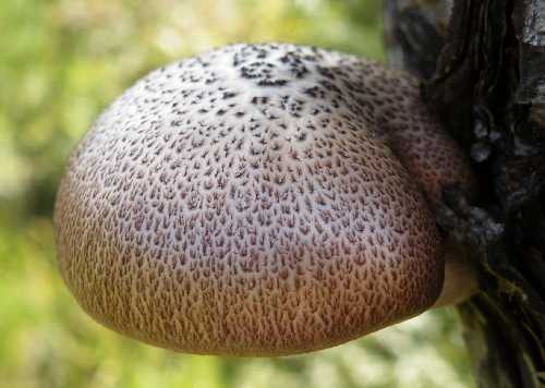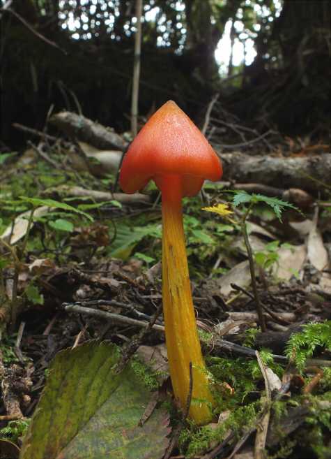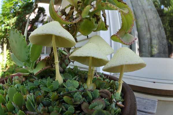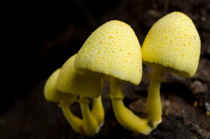 夏頃、温室、花壇、鉢物の土などから発生。傘は小~中型で、幼時卵形、のちに中高の広 円錐形 。表皮はレモン色の粉、綿屑状など鱗片に覆われ美しい。成熟すると周辺部は扇面状となる。ひだは密で淡黄色、柄は傘と同色で、下部ほど太く、壊れやすいつばがある。暖地系のきゃしゃなきのこである。