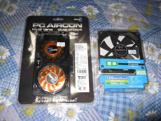 婆さんは、どこかへ旅行へ私は、食事代として置いてあった5k円を持って祖父地図へ・・・・というわけで遡る事、今日の朝意識はあさってのほうに(←眠りの森方面へ)逝きつつ、午前7時ごろ婆さん『ばあちゃん、旅行に行くから明日の夜まで帰らない。テーブルに5k円置いておいたから、好きにしなさい』・・・・・・・・・ワーイ、好きにする~wというわけで、とりあえず早すぎなので・・・・2度寝wそして、ようやく起床したのが午前9:30とりあえず、土曜日という曜日を生かして新聞チェック♪やっぱ、電気屋の広告は土曜日に限るwまぁ、広告の店に行くとは限らないわけですが・・・・・wうん、SDHCが安くなってきたからデジカメ用に1枚買おうかな。あとは・・・・・店に行って決めればいっかwというわけで、朝食兼昼食を食べて・・・・・11:30そろそろ、出発するかぁ・・・・・。フラッと祖父地図(@町田)へというわけで、購入してきたアイテムは~~・SDHC4G:1680円・12cmファン:1240円・グラボクーラー(?):2478円計5398円SDHC4Gは買い物の後に自動車部で活動だったので活動が始める前に開封したので写真には乗ってないのです。で、まぁ、部活は大したことしてなかったので割愛して・・・家に帰って、さっそくPCに装備させちゃいます。・ファンネジ穴を作らなきゃいけなくてそれがめっちゃ大変でした。・グラボクーラー(?)他のケーブルが干渉しまくってなかなかつけるのに苦労しました。で、装備した後の写真取るのを忘れました。だって、装備するだけでめちゃくちゃ大変なんだもん・・・・・。ケースもめちゃくちゃ重いし・・・・・・。腰が痛くなっちゃいましたよ・・・・・・・・・。でも、装備したおかげか。ケース内は結構空気が流れてるみたいです。あとは、CPUクーラーをよく冷えるのに変更したら冷却チューンは終了ですかね。そしたら、いよいよ夢の64bitに向けて走り出しますwでも、ファン全開だとうるさい・・・・・・。