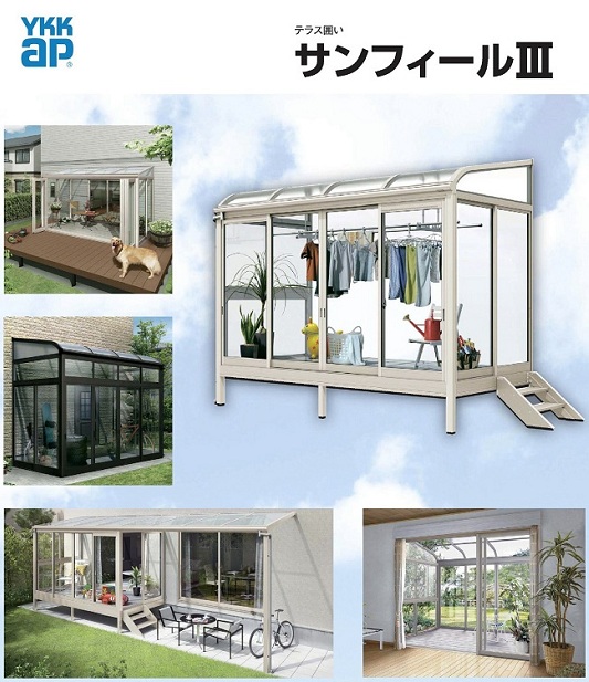 サンルームの修繕や新設工事は、富山県内全域に対応します。富山県東部:富山市、滑川市、中新川郡、魚津市、黒部市、下新川郡富山県西部:高岡市、射水市、氷見市、小矢部市、砺波市、南砺市 YKK AP サンフィール3雨の多い季節や花粉など洗濯物の外干しも「サンフィール3」なら安心。庭まわりの使い心地をさらにアップ。いつでも『干せる』、いろいろ『しまえる』快適空間。バージョンアップしたテラス囲い・バルコニー囲いです。屋根やクレセントを新しくするなど、快適性能にこだわりました。 【工事の流れ】1.事前の打合せ。大きさや種類を確認。2.工事開始。3.シーリング・建付調整・チェックを行い工事完了。 【工事期間】 約1日。 現場確認、見積りは無料まずはお電話ください 24時間受付 0120-375-345アルミ建材和田 〒933-0062 富山県高岡市江尻856-2 納得の徹底対抗 かならず他店より安くしますぜひ、ご相談ください (社)日本サッシ協会加盟店(社)カーテンウォール・防火開口部協会加盟店 スタッフは、富山県の建築組合員です。建築組合では、市や町のご協力のもと「無料の住宅相談所」を開設しています。新築・増改築はもちろん住宅診断まで、お気軽にご相談ください。