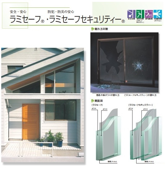 防災ガラスの設置は、富山県内全域に対応します。富山県西部:高岡市、射水市、氷見市、小矢部市、砺波市、南砺市富山県東部:富山市、滑川市、中新川郡、魚津市、黒部市、下新川郡 AGC 防犯機能を強化した防災ガラス ラミセーフセキュリティー傷ついても、傷つけない。防災ガラスは、透明なボディガード。透明で美しいガラス。災害は、それを凶器に変える。事故・犯罪・災害 日常から非日常までカバーする、安心の新基準。防災ガラスとは、「合わせガラス」のことです。強靭な特殊フィルムが二枚のガラスの間に接着されているため、強い衝撃を受けてガラスが割れたとしても、砕け落ちることはありません。また割れた状態でも窓枠に留まりますので、被災後も内部空間を保全し、風雨にさらされることがありません。特に学校など、広域避難場所に指定される公共施設には、是非、この「合わせガラス」による防災ガラスの採用をおすすめします。 【工事の流れ】 1.事前の打合せ。大きさや種類を確認。2.工事開始。古いガラスを撤去して、新しい防災ガラスを設置。3.建付調整・チェックを行い工事完了。 【工事時間】 約3時間。 現場確認、見積りは無料まずはお電話ください 24時間受付 0120-375-345アルミ建材和田 〒933-0062 富山県高岡市江尻856-2 納得の徹底対抗 かならず他店より安くしますぜひ、ご相談ください (社)日本サッシ協会加盟店(社)カーテンウォール・防火開口部協会加盟店 スタッフは、富山県の建築組合員です。建築組合では、市や町のご協力のもと「無料の住宅相談所」を開設しています。新築・増改築はもちろん住宅診断までお気軽にご相談ください。