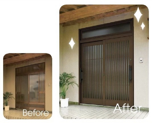 玄関リフォームは、富山県内全域に対応します。 富山県西部:高岡市、射水市、氷見市、小矢部市、砺波市、南砺市富山県東部:富山市、滑川市、中新川郡、魚津市、黒部市、下新川郡 貴方の大事な住まい、もっと快適にしませんかたった1日でデキるんです「窓や玄関のリフォームって大変」とお考えではありませんか。実はリフォーム工事は、それほど時間もかからず、手軽で簡単。窓の改修なら最短で、約30分。玄関のリフォームでも半日から1日程度で完了します。もちろん、品質も確かで安心です。より快適な住まいへ、リフォームしてみませんか。 YKK AP 玄関引戸 れん樹 Japanese Style Sliding Doorスライド機構の玄関引戸は、設置する場所を選びません。たとえば駐車スペースとアプローチを兼用したり、階上に玄関を設けたり、また、開閉もしやすいのでバリアフリー設計にも最適です。広いスペースではもちろん、限られたスペースでの設計の自由度を大きく高めます。 【工事の流れ】1.事前の打合せ。大きさや種類を確認。2.工事開始。古い玄関引戸を撤去して、新しい断熱玄関引戸を設置。3.シーリング・建付調整・チェックを行い工事完了。 【工事期間】 約1日。 現場確認、見積りは無料まずはお電話ください 24時間受付 0120-375-345アルミ建材和田 〒933-0062 富山県高岡市江尻856-2 納得の徹底対抗 かならず他店より安くしますぜひ、ご相談ください (社)日本サッシ協会加盟店(社)カーテンウォール・防火開口部協会加盟店 スタッフは、富山県の建築組合員です。建築組合では、市や町のご協力のもと「無料の住宅相談所」を開設しています。新築・増改築はもちろん住宅診断までお気軽にご相談ください。
