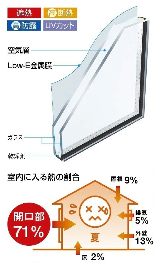 エコガラスの設置(節電改修)は、富山県内全域に対応します。富山県西部:高岡市、射水市、氷見市、小矢部市、砺波市、南砺市富山県東部:富山市、滑川市、中新川郡、魚津市、黒部市、下新川郡 "Smart&Eco"な生活スタイル みなさんの住まいでは、冷暖房機器のパワーをいくら上げてもなかなか効果を感じない、ということはありませんか?一般的な住まいでは、外壁や屋根のほか、窓や扉などの開口部からも意外に多くの熱が出入りしています。住まいの断熱は、人が環境と共生しながら快適に暮らしていくうえで、とても大きなメリットがあります。 これからの断熱キーワード? 「窓」平成4年省エネ基準で建てた住宅モデルにおける例では、夏は外からの熱の侵入は、約 7 割が窓から、また、冬になると暖房熱の約 5 割が窓から流出します。窓からの熱の侵入・流出を効果的に防ぐことで経済的で快適な暮らしをささえます。ガラス選びで更に賢く節約夏期の日射遮蔽と冬期の日射取得を考えて Low-Eガラスにしたら、年間冷暖房費「10%カット」冬は室内熱を外へ逃がさないため、冷暖房効率を高めます。いちばん効きやすいところから手を入れる。それがかしこいリフォームのコツ。そのカギをにぎっているのは、何といっても、窓。手軽にはじめて、効果が出やすい窓のリフォームがおすすめです。 YKK AP Low-E複層ガラス(遮熱タイプ)夏は太陽熱の侵入を防ぎ、冬は暖房熱を外に逃がしません夏の冷房時に窓・ドアから侵入してくる熱は、家全体に入ってくる熱の半分以上を占めます。室外側ガラスにLow-E複層ガラス(遮熱タイプ)なら、夏は室内に入る太陽の熱線を50%以上カット。冬は室内熱を外に逃がさないため、一般複層ガラスより冷暖房効率を高めます。紫外線を76%カット紫外線領域の吸収性能が高いため、太陽光だけでなく、紫外線も大幅カット。大切な家具やカーペットを、日焼けによる褪色・退色から守ります。 【工事の流れ】1.事前の打合せ。大きさや種類を確認。2.工事開始。古いガラスを撤去して、新しい断熱ガラスを設置。3.建付調整・チェックを行い工事完了。 【工事時間】 約1時間。 現場確認、見積りは無料まずはお電話ください 24時間受付 0120-375-345アルミ建材和田 〒933-0062 富山県高岡市江尻856-2納得の徹底対抗 かならず他店より安くしますぜひ、ご相談ください (社)日本サッシ協会加盟店(社)カーテンウォール・防火開口部協会加盟店 スタッフは、富山県の建築組合員です。建築組合では、市や町のご協力のもと「無料の住宅相談所」を開設しています。新築・増改築はもちろん住宅診断までお気軽にご相談ください。