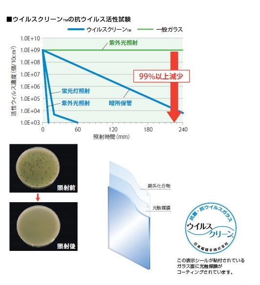 ガラス工事は、富山県内全域に対応します。富山県西部:高岡市、射水市、氷見市、小矢部市、砺波市、南砺市富山県東部:富山市、滑川市、中新川郡、魚津市、黒部市、下新川郡 NSG 日本板硝子株式会社 ウイルスクリーン可視光応答型の光触媒ガラス「ウイルスクリーン」は、蛍光灯などの可視光によってガラス面に付着する99%以上のウイルスを低減します。医療介護施設、公共施設、保育施設など衛生的な環境が求められる部位に最適です。 【工事の流れ】1.事前の打合せ。大きさや種類を確認。2.工事開始。古いガラスを撤去して、新しい抗菌・抗ウイルスガラスを設置。3.建付調整・チェックを行い工事完了。 【工事時間】 約1時間。 現場確認、見積りは無料まずはお電話ください 24時間受付 0120-375-345アルミ建材和田 〒933-0062 富山県高岡市江尻856-2 納得の徹底対抗 かならず他店より安くしますぜひ、ご相談ください (社)日本サッシ協会加盟店(社)カーテンウォール・防火開口部協会加盟店 スタッフは、富山県の建築組合員です。建築組合では、市や町のご協力のもと、「無料の住宅相談所」を開設しています。新築・増改築はもちろん住宅診断まで、お気軽にご相談ください。