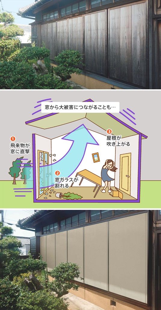 ≫現場確認、見積りは無料≪ 雨戸の修理、雨戸の後付け工事は、富山県内全域に対応します。富山県西部:高岡市、射水市、氷見市、小矢部市、砺波市、南砺市富山県東部:富山市、滑川市、中新川郡、魚津市、黒部市、下新川郡 いい製品を、どこよりも安く! 「雨戸の枠が、グラグラする」、「雨戸のカギ(錠)が閉まりにくい」、「台風に強い窓にしたい」、「窓まわりの防犯性を良くしたい」など、雨戸の修理から、ニーズに対応した窓まわりのリフォーム工事まで、窓まわりのことなら何でもお任せください。窓の専門店です。 YKK AP 雨戸枠9AF後付のすっきりした外観、防風雨や防犯対策に幅広く対応します。外壁工事は必要ありません。凹凸のある壁面でもスピーディーに取付けられます。通風雨戸なら、可動ルーバーの角度調整により、通風・採光・プライバシーの確保を自由に行えます。ルーバーは軽くて丈夫なアルミ製。耐風圧に優れ、風の強い日でも安心。ルーバー角度はシンプルなスライド操作で調整可能。下部には、固定パネルを設け、防犯にも配慮しました。 ≫施工実績トップクラス・創業45周年≪ 【工事の流れ】1.事前の打合せ。大きさや種類を確認。2.工事開始。窓の外側に、雨戸を設置。3.シーリング・建付調整・チェックを行い工事完了。 【工事時間】 約3時間。 見積りは無料!まずはお電話ください! 24時間受付 0120-375-345アルミ建材和田 富山県高岡市江尻856-2 【価格保証】徹底的に価格競争します! ◇富山県の気候風土に適した丈夫で快適なリフォームから耐震補強工事まで住まいのことなら何でも、お気軽にご相談ください。(社)日本サッシ協会加盟店(社)カーテンウォール・防火開口部協会加盟店 【富山県西部:営業エリア】高岡市、射水市、氷見市、小矢部市、砺波市、南砺市【富山県東部:営業エリア】富山市、滑川市、中新川郡、魚津市、黒部市、下新川郡 【所在地】高岡市江尻856-2 Tel 0120-375-345 【取扱メーカー】三協アルミ、YKK AP、リクシル、AGC、美和ロック、3M 来店不要!電話で、24時間受付中!