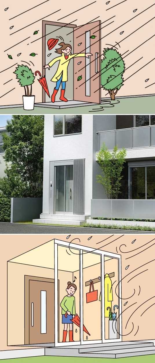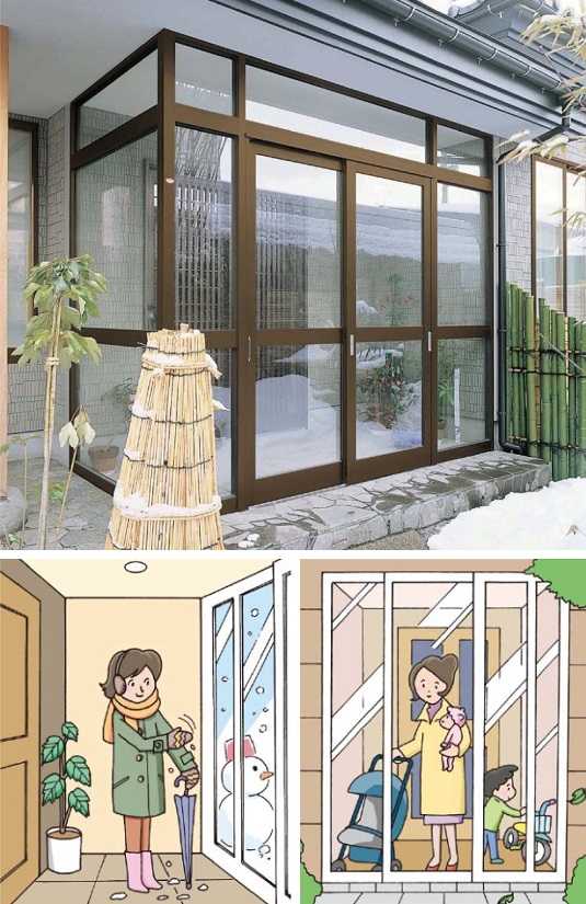 ≫現場確認、見積りは無料≪風除室の修理、風除室の新設工事は、富山県内全域に対応します。富山県西部:高岡市、射水市、氷見市、小矢部市、砺波市、南砺市富山県東部:富山市、滑川市、中新川郡、魚津市、黒部市、下新川郡 いい製品を、どこよりも安く! 「雨や雪、などが吹き込んで、出入りに困る」、「子供のベビーカーや三輪車って、玄関に置いとくとジャマよね・・・」、「宅配便で届いた荷物が大きかったり、数が多いとき置き場所に困るのよね・・・」など、風除室の修理から、リフォームニーズに対応した風除室の新設工事まで、住まいの囲い工事のことなら何でもお任せください。エクステリア工事の専門店です。YKK AP 風除室 セフター3進化する住まいに、進化する風除室を。より美しく、より個性的に、より快適に、より使い勝手良く。住まいに対するニーズは、年々高まっています。特に、住まいの第一印象を決める玄関まわりは、こだわりが強くなっています。コーディネイトに、収納に、雪・風除けに。「セフター3」は、その全てにこだわり、新規格を充実。風除室の新しいスタンダードです。窓を閉めたまま換気ができ、冬だけでなく夏も快適なエントランスに。ホコリや虫などの侵入も軽減し、1年中快適な空間は使い方自由自在。≫施工実績トップクラス・創業47周年≪ 【工事の流れ】1.事前の打合せ。大きさや種類を確認。2.工事開始。今ある玄関に合わせて風除室を設置。3.シーリング・建付調整・チェックを行い工事完了。【工事期間】 約1日。 見積りは無料!まずはお電話ください! 24時間受付 0120-375-345アルミ建材和田 富山県高岡市江尻856-2 【価格保証】徹底的に価格競争します!◇富山県の気候風土に適した丈夫で快適なリフォームから耐震補強工事まで住まいのことなら何でも、お気軽にご相談ください。(社)日本サッシ協会加盟店(社)カーテンウォール・防火開口部協会加盟店 【富山県西部:営業エリア】高岡市、射水市、氷見市、小矢部市、砺波市、南砺市【富山県東部:営業エリア】富山市、滑川市、中新川郡、魚津市、黒部市、下新川郡 【所在地】高岡市江尻856-2 tel 0120-375-345 【取扱メーカー】三協アルミ、YKK AP、リクシル、AGC、美和ロック来店不要!電話で、24時間受付中!