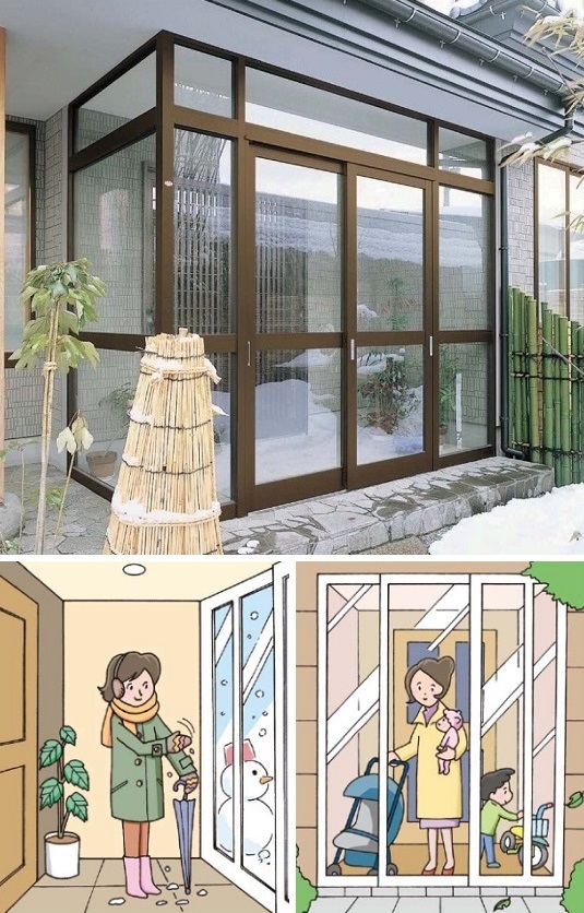 ≫現場確認、見積りは無料≪風除室(囲い)修理、風除室(囲い)工事は、富山県内全域に対応します。富山県西部:高岡市、射水市、氷見市、小矢部市、砺波市、南砺市富山県東部:富山市、滑川市、中新川郡、魚津市、黒部市、下新川郡いい製品をどこよりも安く! 比べてください!「風除室のガラスが割れた」「風除室の引戸のカギ(錠)が壊れた」「玄関引戸から雨や雪、などが吹き込んで出入りに困る。風除室がほしい」「子供のベビーカーや三輪車って玄関に置いとくとジャマよね。風除室にしたい」「玄関を囲えば宅配便で届いた荷物が大きかったり数が多いとき置き場所にできる」「玄関が寒い。玄関前を囲って風除室にしたい。暖かい玄関にしたい」など、風除室の修理から、リフォームニーズに対応した風除室の工事まで、住まいの囲い工事のことなら何でもお任せください。エクステリア工事の専門店です。進化する住まいに、進化する風除室を。より美しく、より個性的に、より快適に、より使い勝手良く。住まいに対するニーズは、年々高まっています。特に、住まいの第一印象を決める玄関まわりは、こだわりが強くなっています。コーディネイトに、収納に、雪・風除けに。その全てにこだわり、新規格を充実。風除室の新しいスタンダードです。窓を閉めたまま換気ができ、冬だけでなく夏も快適なエントランスに。ホコリや虫などの侵入も軽減し、1年中快適な空間は使い方自由自在。≫まずは無料で問合せ見積り依頼を≪アルミ建材和田がお客さまに選ばれる3つのポイントPOINT1:地域に根差した専門店!POINT2:安心の施工実績!POINT3:高いお客さま満足度!YKKAP 風除室 セフターⅢ雨・風・雪の吹き込みを防ぎ、玄関まわりをもっと便利に!玄関に吹き込む雨や雪、風などを防ぐ風除室です。冬は服や傘についた雪を払ったり、花粉の季節は花粉を落とすスペースとして便利。ベビーカーや自転車などをゆったりしまえて、使うときにもサッと使えます。玄関まわりに雨に濡れない新しい空間ができることで、自転車や遊具などの便利な収納スペースとして、あるいはお気に入りを飾るディスプレイとして、さまざまな使い方が可能になります。雨や風、雪の吹き込みを防げるので、玄関ドアを開けて家の中に入る前に、雨や雪をはらったり、濡れた傘やレインコートをしまったりできます。また、施錠できるので玄関ドアとの二重ロックで防犯効果も期待できます。目隠しになる袖スクリーンや、玄関ドアや外構商品とコーディネイトできる化粧アタッチメント、ビルトイン構造の機能柱などのオプションを設置することで、上質な玄関まわりを演出できます。季節による花粉や黄砂や、靴についた泥などを家に入る前に落とせます。さらに、玄関ドアと二重構造になるので、遮音・断熱などの効果もあります。富山県内最安値に挑戦!徹底的に価格競争します!大切な「すまい」も「くらし」もゆたかにグレードアップ。選ぶのはお客さまです。お客さまの暮らしをより快適にするためのプランをご提案いたします。≫施工実績トップクラス創業49周年≪富山県の気候風土に適した「安心」「納得」のリフォームでお客さまの快適な暮らしを実現していきます。住まいのことなら何でもお気軽にご相談ください。「診断力」「提案力」が解決いたします。【工事の流れ】1.事前の打合せ(お悩み相談を受付)2.ご自宅の下見&採寸3.最終見積り&ご契約4.工事実施5.建付調整を行い工事完了【工事期間】約1日見積無料!まずはお電話ください!24時間/年中無休 0120-375-345アルミ建材和田 高岡市江尻856-2【価格保証】もっと安く!他社の見積りや広告に対応!(社)日本サッシ協会加盟店(社)カーテンウォール・防火開口部協会加盟店【富山県西部:営業エリア】高岡市、射水市、氷見市、小矢部市、砺波市、南砺市【富山県東部:営業エリア】富山市、滑川市、中新川郡、魚津市、黒部市、下新川郡【所在地】富山県高岡市江尻856-2 tel 0120-375-345【取扱メーカー】三協アルミ、YKK AP、リクシル、AGC、美和ロック来店不要!簡単&便利!電話で、24時間受付中!