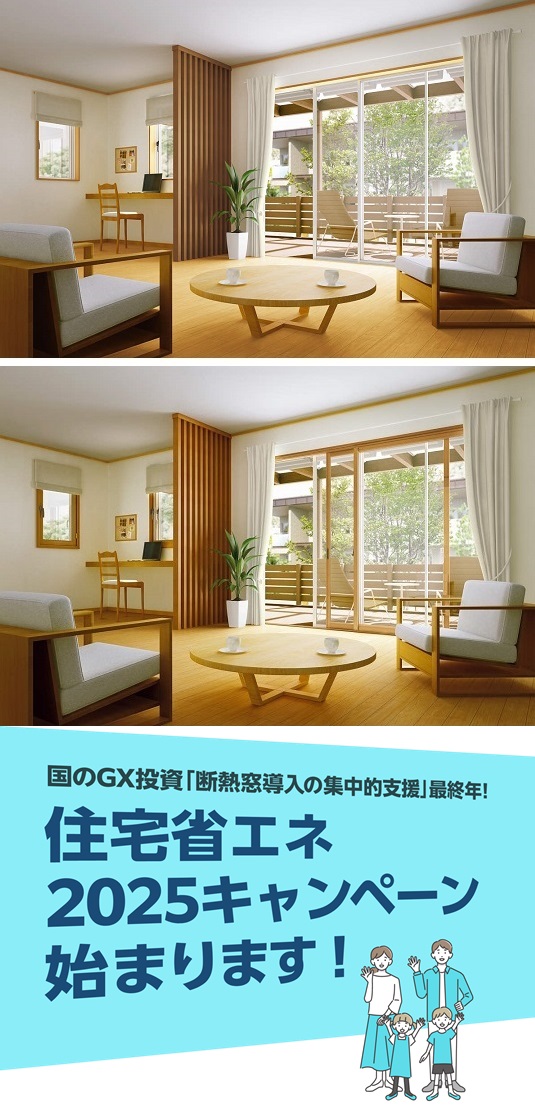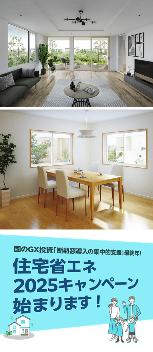 ≫現場確認、見積りは無料≪補助金の対象(断熱窓・内窓)工事は、富山県内全域に対応します。富山県西部:高岡市、射水市、氷見市、小矢部市、砺波市、南砺市富山県東部:富山市、滑川市、中新川郡、魚津市、黒部市、下新川郡いい製品をどこよりも安く!比べてください!住宅省エネ2025キャンペーン(「国土交通省・経済産業省・環境省」3省連携による住宅の省エネ化支援強化策<補助制度>)住宅の省エネ化への支援強化に関する予算案を閣議決定!国土交通省・経済産業省・環境省が連携して取り組みます!~省エネ住宅の新築、住宅の省エネリフォームを支援する「子育てグリーン住宅支援事業」を創設します~2050年カーボンニュートラルの実現に向けて住宅の省エネ化の支援を強化するため、国土交通省及び環境省は、「ZEH水準を大きく上回る住宅(GX志向型住宅)」の新築や、子育て世帯等を対象とする長期優良住宅やZEH水準住宅の新築を支援する新たな補助制度を創設し、賃貸住宅も含めて幅広く支援します。また、国土交通省、経済産業省及び環境省は、住宅の省エネリフォーム等に関する補助制度をそれぞれ実施するとともに、各事業をワンストップで利用可能とするなど連携して支援を行います。また、国土交通省、経済産業省及び環境省は、住宅の省エネリフォーム等に関する補助制度をそれぞれ実施するとともに、各事業をワンストップで利用可能とするなど連携して支援を行います。【省エネ改修】高断熱窓の設置<断熱窓への改修促進等による住宅の省エネ・省CO2加速化支援事業【環境省】(令和6年度補正予算案 1,350億円)>〇補助金は、断熱改修工事を行う事業者の申請に基づき、住宅所有者に補助金全額が還元されることを条件に、当該事業者に対して交付。〇高断熱窓(熱貫流率Uw1.9以下等、建材トップランナー制度2030年目標水準値を超えるもの等、一定の基準を満たすもの)への断熱改修工事に対して支援。〇工事内容に応じて定額を交付。(補助率1/2相当等。1戸あたり最大200万円。) (注)申請は、住宅所有者等(一般消費者)のために、アルミ建材和田が行います。※本事業の内容は変更される場合もございます。また掲載内容は概要であり、より詳細な条件などが定められている場合もございますので、ご利用にあたっては環境省ホームページにて必ずご確認ください。≫まずは無料で問合せ見積り依頼を≪アルミ建材和田がお客さまに選ばれる3つのポイントPOINT1:地域に根差した専門店!POINT2:安心の施工実績!POINT3:高いお客さま満足度!≫施工実績トップクラス創業49周年≪富山県の気候風土に適した「安心」「納得」のリフォームでお客さまの快適な暮らしを実現します。住まいのことなら何でもお気軽にご相談ください。「診断力」「提案力」が解決いたします。YKKAP マドリモ 断熱窓窓がかわると、暮らしが変わる。半日の窓リフォームで住まいの暑さ寒さを解決。壁工事不要のカバー工法で、窓をスピード交換。暑さ寒さの原因となっていた古い窓を、新築にも使われている最新の窓にかえて、より快適で健康、ローエネな暮らしにかえることができます。1窓あたり約半日でリフォーム完了。今ある窓枠に新しい窓枠をかぶせて取付けるカバー工法。壁を壊さず、住みながら最新の断熱窓へリフォームできます。窓がかわると、部屋全体が暖かく。断熱性が低い窓は外の寒さの影響を受けやすく、窓辺がひんやり。熱を伝えにくい樹脂窓にかえれば、冬でも室内側が冷たくなりにくく、部屋全体を暖かく保てます。自然換気を、より多く。開かない窓を開く窓に変えることも可能です。また引違い窓で風が入りにくい場合、「ウインドキャッチ連窓」に交換すれば、横からの風も効果的にキャッチし、一つの窓で風の入口と出口をつくることで換気量を増やすことができます。YKKAP マドリモ 内窓かんたん内窓リフォームでさよなら、寒くて暑い家。今ある窓に内窓を取付けて二重窓に。窓の断熱性を高め、住まいの暑さ寒さのお悩みを解消できます。室外からの騒音対策にも効果的です。1窓あたり約60分でリフォーム完了。戸建もマンションも暖かく。今ある窓の内側に内窓を取付けるだけで、断熱性をアップし、寒さ暑さのお悩みを解消。マンションでも、設置位置は専有部なので戸別のリフォームが可能です。断熱効果のヒミツは「空気」と「樹脂」。今ある窓と内窓の間に空気層ができることで、冷たい外気の影響を受けにくくなります。熱を伝えにくい樹脂のフレームが、さらに断熱効果を高めます。室内側が冷たくなりにくいので、結露の発生も抑えられます。騒音も減って、お部屋が静かに。外からの音を15dB低減。騒音が半分以下に聞こえる防音効果です(人間の耳は、10dB下がれば、音が約半分に減ったように感じると言われています)。富山県内最安値に挑戦!徹底的に価格競争します!大切な「すまい」も「くらし」もゆたかにグレードアップ。選ぶのはお客さまです。お客さまの暮らしをより快適にするプラ