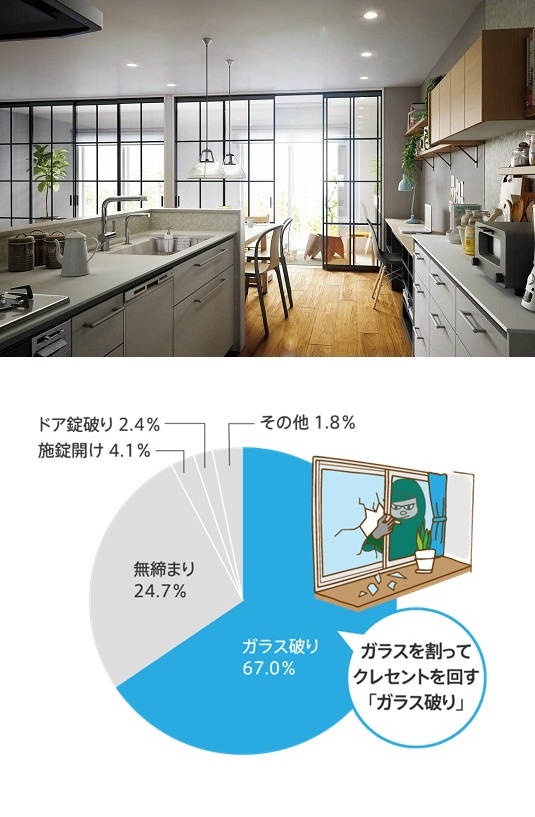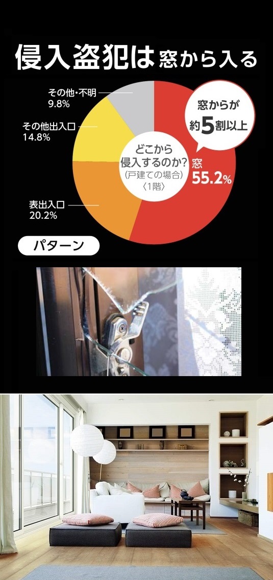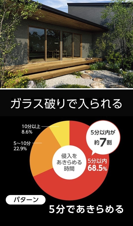 ≫現場確認、見積りは無料≪安全合わせ複層ガラスへの交換は富山県内全域に対応します。富山県西部:高岡市、射水市、氷見市、小矢部市、砺波市、南砺市富山県東部:富山市、滑川市、中新川郡、魚津市、黒部市、下新川郡防犯にも災害にも備えられる破壊されにくいタイプの複層ガラス。ガラスの間に強度と柔軟性に優れた樹脂中間膜を挟み込んだ、破壊されにくく、飛散しにくい複層ガラス。強風時の飛来物対策にも有効です。紫外線カット効果にも優れています。いい製品をどこよりも安く!比べてください! 「玄関ドアのガラスが割れた」「窓のクレセント錠(カギ)が壊れた」「防犯対策に欠かせない優れた防犯ガラスに興味がある」「断熱ガラスで室内に太陽光を取込み暖房熱を逃がさないようにしたい」「お手入れ不要で窓の表情を豊かに演出する格子入複層ガラスに交換したい」「騒音を遮り気になる視線も遮る効果のあるガラスにしたい」「高性能トリプルガラス樹脂窓に興味がある」「太陽の熱線と紫外線から守ってくれる遮熱ガラスにしたい」「強風時の飛来物対策として破壊されにくいガラスに交換したい」など、窓ガラスの修理から、ニーズに対応した窓まわりの防犯対策まで、窓まわりのことなら何でもお任せください。窓の専門店です。≫まずは無料で問合せ見積り依頼を≪アルミ建材和田がお客さまに選ばれる3つのポイントPOINT1:地域に根差した専門店!POINT2:安心の施工実績!POINT3:高いお客さま満足度!YKKAP 安全合わせ複層ガラス/防災安全合わせ複層ガラス防犯にも災害にも備えられる破壊されにくいタイプの複層ガラス。ガラスの間に強度と柔軟性に優れた樹脂中間膜を挟み込んだ、破壊されにくく、飛散しにくい複層ガラス。強風時の飛来物対策にも有効です。紫外線カット効果にも優れています。住まいの防犯に欠かせない優れた性能。複層ガラスよりも破壊されにくい構造で単板ガラス(フロートガラス)に比べ、はるかに優れた防犯性能を持っています。日本の住宅浸入手口に多い”こじ破り”対策にも大変効果的で、官民合同会議の定める”防犯性能の高い建物部品”として認定されています。紫外線を99%以上カット。樹脂中間膜が紫外線をカット。気になるお肌の日焼けや家具の色あせ防止にも有効です。破れても飛散しにくく、震災時も安心。ガラスと中間膜が加熱圧縮されているので、衝撃などで万が一ガラスが割れた場合でも、破片が飛散しにくく安全性に優れています。富山県内最安値に挑戦!徹底的に価格競争します!大切な「すまい」も「くらし」もゆたかにグレードアップ。選ぶのはお客さまです。お客さまの暮らしをより快適にするためのプランをご提案いたします。≫施工実績トップクラス創業49周年≪富山県の気候風土に適した「安心」「納得」のリフォームでお客さまの快適な暮らしを実現していきます。住まいのことなら何でもお気軽にご相談ください。「診断力」「提案力」が解決いたします。窓の防犯性を高めたい戸建住宅では半数以上が窓からの侵入。対策は「泥棒に嫌われる窓」にすること。二重窓にしたり、ガラス破りに強いガラスを選ぶことで侵入を諦めさせる窓に。また、シャッターや雨戸、面格子の取り付けも効果的です。窓の防犯が重要な理由泥棒の侵入経路は、戸建て住宅の場合、半数以上が窓からの侵入です。侵入者にとって「掃き出し窓」が最も破りやすいと言われています。侵入手口としては、「カギの開いているところ(無締まり、鍵のかけ忘れ)からの侵入」に次いで多いのは「ガラス破り」です。カギが閉まっていても、ガラスの一部を破り、そこから手を差し入れてクレセントを回して解錠してしまうのです。 このようなデータから、窓の防犯対策がどれほど大切かということが分かります。侵入盗犯の7割が5分以上要すると侵入をあきらめ、10分以上かかるとそのほとんどはあきらめる確率が高いというデータがあります。しっかり鍵をかけることに次いで、時間がかかりそうだと思わせターゲットにされにくくすること、侵入に時間をかけさせ侵入をあきらめさせることが窓の防犯ポイントです。侵入をためらわせ、手こずらせ、諦めさせる窓とはガラス破り対策として割られにくい窓ガラスにしたり、開けづらいクレセントや補助錠をつけることが有効です。また、そもそも狙われにくい窓にするための工夫も大切です。内窓をつけて二重窓にしたり、シャッターや雨戸、面格子をつけることで、侵入をためらわせるとともに、実際に侵入しようとしても破壊に手間取るため、途中で侵入をあきらめさせる効果も期待できます。また商品を選ぶ際は、CPマークがついた防犯性が高いものがおすすめです。割られにくい窓ガラスに交換するガラス破り対策として「安全合わせ複層ガラス/防災安全合わせ複層ガラス」が有効です。2枚のガラスの間に中間膜をはさんであるので、ガラスを破壊しようとしても、ヒビが入るだけで割れにくいという