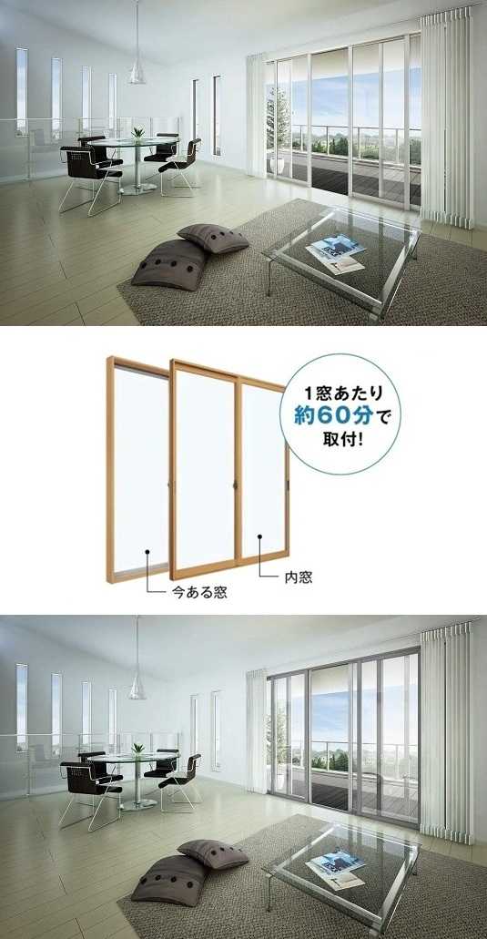 内窓(2重窓)修理、内窓(2重窓)取付は、富山県内全域に対応します。富山県西部:高岡市、射水市、氷見市、小矢部市、砺波市、南砺市富山県西部:富山市、滑川市、中新川郡、魚津市、黒部市、下新川郡富山県内最安値!「内窓のガラスが割れた」「内窓のクレセント錠が壊れた」「防音のために内窓がほしい」「内窓の省エネ効果に興味がある」など、内窓の修理から、ニーズに対応した窓のリフォーム工事まで、窓まわりのことなら何でもお任せください。窓の専門店です。冬の寒さと夏の暑さに悩まされるリビングも、「インプラス」でたちまち快適空間へ。あつい!さむい!うるさい!のは、窓の問題じゃないですか?家の暖かさを逃がしているのは、窓でした。インプラスを付ければ暖冷房費がグッと減り、家計にも地球にもやさしくなります。外の音が気になる方にも、家の中の音を漏らしたくない方にも、インプラスを付ければ、双方向の遮音性が大幅にUPします。さらに不快な結露も抑えます。内窓で季節に合わせた心地よさ。空気の層が断熱材となり家の中を快適に。まずは無料で見積り依頼をアルミ建材和田がお客さまに選ばれる3つのポイントPOINT1:地域に根差した専門店POINT2:安心の施工実績POINT3:高いお客さま満足度LIXIL 内窓 インプラス/インプラス for Renovationインプラスは、「断熱効果」「結露軽減」「遮音効果」「UVカット」「侵入抑止効果」「経済性」の6つのメリットがあります。既存の窓とインプラスの間にうまれた「空気の層」が断熱材に。インプラスは、アルミに比べ熱を伝えにくい樹脂でできた内窓です。さらに、既存の窓との間に空気の層をつくることで、室内のあたたかい空気の流失をブロック。外気温の影響を受けにくく快適な室内環境を実現します。断熱性の高い窓で結露の発生を抑え、お掃除ラクラク。既存の窓とインプラスの間に生まれる新しい空気層。 室外と室内をしっかりと隔てる構造になるため、大きな断熱効果となります。外気温の影響を受けにくくなり、結露の発生を大幅に抑え、お掃除ラクラクの快適な毎日に変わります。空気の層が防音壁となり、 気になる音を半減。空気の層のはたらきは、断熱効果だけではありません。外からの不快な音が室内に入ることや、室内で発生した音が、近隣に漏れるのを抑える防音壁としての役割も。人間の耳は、音の大きさが10dB下がると音が半減したように感じると言われ、快適で静かな住環境づくりにも効果的です。「Low-E複層ガラス」で 紫外線をカット。紫外線は、人体や住まいにとって有害な電磁波です。肌の日焼けやカーテン・家具などの色あせの原因にもなります。「Low-E複層ガラス」は、一般複層ガラスに比べ、より多くの紫外線をカットするため紫外線対策にもおすすめです。二重の窓で防犯性や安全性を高める。インプラスを取付けることで、2ロックとなります。また、窓が二重の住宅は侵入までに時間がかかるため、 侵入をあきらめさせる心理効果も期待できます。さらに、特殊な中間膜を2枚のガラスの間に挟んでいる「安全合わせガラス」は耐貫通性に優れ、「こじ破り」や「打ち破り」対策にも有効です。断熱性能アップで暖冷房費ダウンへ。家の中で熱の出入りが大きいのが窓です。窓の断熱性能がアップすると、住まい全体の断熱性能もアップ。毎月の暖冷房費が約1,400円節約でき、インプラスがお財布にもうれしい効果をもたらします。何度でも徹底的に価格競争します!必ず他社より安くなります!大切な「すまい」も「くらし」もゆたかにグレードアップ。選ぶのはお客さまです。お客さまの暮らしをより快適にするためのプランをご提案いたします。夏の日射熱の侵入も防ぐ!夏の冷房時に家全体に入ってくる熱のうち、窓やドアの開口部を通るものが70%以上。日射熱がたくさん侵入してくる窓の日差し対策をすれば、冷房効果を高めて涼しく快適な室内環境にします。新たな働き方として定着しつつある在宅勤務。アンケート調査によると、在宅勤務をこれからも継続した場合の心配事として、“夏場の室温上昇”が一番にあげられていました。屋外よりも室内での発症の割合が高いことが知られている室内熱中症に対しても、過半数以上の人が心配と答えています。また、今まで気づかなかった日中の騒音が、ストレスになっている人もいるのではないでしょうか?そんな心配事もプチリフォームでパッと解決。内窓を取付けることで、暑さや室内熱中症のリスクを減らし、静かな環境で家族と過ごす時間も仕事の時間も、もっと豊かにすることができます。おうち時間をもっと充実させるために、窓辺の環境整備もぜひ進めてみませんか?施工実績・トップクラス・創業50周年富山県の気候風土に適した「安心」「納得」のリフォームでお客さまの快適な暮らしを実現していきます。住まいのことなら何でもお気軽にご相談ください。「診断力」「提案力」が解決いたします。【工事の流れ】1.事前の打合せ(お悩み