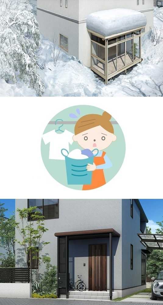 サンルーム修理、サンルーム工事は、富山県内全域に対応します。富山県東部:富山市、滑川市、中新川郡、魚津市、黒部市、下新川郡富山県西部:高岡市、射水市、氷見市、小矢部市、砺波市、南砺市富山県内最安値!「サンルームの屋根が壊れた」「サンルームのガラスが割れた」「サンルームがあれば雨の心配があっても洗濯物を干したまま安心して外出できる」「ペットとの時間や充実した余暇を楽しむ空間としてサンルームがほしい」「サンルームで敷地を有効に最大限に活用したい」「バイクや自転車が雨に濡れないようにサンルームがほしい」「晴れた日も雨の日も、いつでも気持ちよくお洗濯したい」など、サンルームの修理から、リフォームニーズに対応したサンルームの工事まで、サンルームのことなら何でもお任せください。エクステリア工事の専門店です。雨を気にせず洗濯物を干したい。いつでも干せる。いつでもしまえる。家事の不満をスペースで解決。テラスやバルコニーに囲いをつければ、使い勝手のいい家事スペースに早変わり。もの干し場に、ちょっとした物置に便利です。窓の外に屋根をつけて生活空間を広げる。テラス戸の外に屋根を取りつけることで、雨を気にせず洗濯物が干せる便利な空間に。あわせてデッキも設置すれば靴を履かずに気軽に外へ出て物干しの作業ができます。正面にパネルのついた屋根にすれば、雨の降り込みを防ぎ、外からの視線もほどよく遮ることができます。こうした屋根つきの屋外空間は、ちょっとした物を置けたり、自然と触れ合う憩いの場にもなる便利なスペース。敷地の「すき間」を有効活用するリフォームです。囲いをつければ、強い雨も花粉にも有効。物干しスペースを覆う囲い「ソラリア」を設置すれば、風が強い日も安心。花粉やPM2.5対策にも有効です。エアールーバーをつければ窓を閉めていても換気でき、洗濯物も早く乾きます。1階につけるテラス囲いと、2階以上につけるバルコニー囲いがあります。サンルームのように日差しを採り込み蓄熱することで、室内に暖かさをプラスする効果もあります。雨の多い季節や花粉など洗濯物の外干しも「ソラリア」なら安心。庭まわりの使い心地をさらにアップ。いつでも『干せる』、いろいろ『しまえる』快適空間。バージョンアップしたテラス囲い・バルコニー囲いです。屋根やクレセントを新しくするなど、快適性能にこだわりました。サンルームの多目的なニーズにきめ細かく対応します。サンルームとして、洗濯物干し場の利便性を高める製品が充実。まずは無料で見積り依頼をアルミ建材和田がお客さまに選ばれる3つのポイントPOINT1:地域に根差した専門店POINT2:安心の施工実績POINT3:高いお客さま満足度家に置けない物を整理したい。アウトドア用品、工具、園芸用品…。何でも置ける便利収納。勝手口や車庫の脇などちょっとした空きスペースに囲いをつければ、タイヤや工具類、レジャー用品や自転車などがかんたんに収納できる便利空間が生まれます。屋外でも屋内でもない便利スペース。スキー板やスノボ、自転車、タイヤ、シャベルにホースなど、家にはしまいにくいし、外で雨ざらしにもしたくないモノの置き場所には、家の外壁に取り付けられる収納囲いが便利です。出入口を覆うようにつければ、室内からでも室外からでも収納ができ便利です。面材を内部から施工できるため、隣家との間のブロック塀など障害物がある限られたスペースでも取りつけられ、敷地を有効活用することができます。YKKAP ソラリア テラス囲い空と太陽の下にとっておきの空間が広がります。天気を気にせず洗濯物を干せる。住まいの中に自然を感じながら過ごせる。使う人みんなにとって、便利で快適。目指したのはそんな空間です。耐風圧最大42m/秒、耐積雪最大100cm相当※で雪や風にも安心です。天気を気にせず、洗濯物が干せてうれしい「晴れた日でも雨の日でも、いつでも気持ちよくお洗濯できるといいのに…」「洗濯物を干したままでも安心して外出できたらいいのに…」「ソラリア」ならそんな困りごとを解決、家族みんなの願いを叶える空間が実現できます。楽しみ方いろいろ、わが家の新しいくつろぎ場所。テラスに屋根・囲いがあるだけで、そこは開放感あふれる新しい空間に。開放感と同時にプライバシーにも配慮した囲いなら、楽しみ方はさらに広がります。「ソラリア」なら、みんなの笑顔があふれる新しいくつろぎ場所を実現できます。使い道は、さらにいろいろ。小さなスペースや空きスペースにも無駄なく屋根や囲いをつけて、敷地を有効に最大限に活用できます。暮らし方に合せて収納や洗い場、家庭菜園などに使える便利スペースをつくるなど使い方は無限大です。【天井カーテン】耐候性に優れた折りたたみ式の天井カーテンです。屋根の内側に取付けることで、日差しを和らげます。【クリアネット網戸】糸の径が細くネットが見えにくいため、景色がクリア