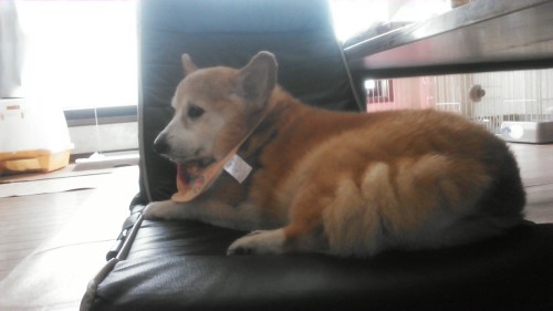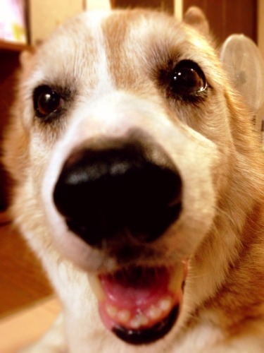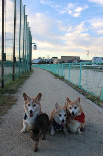 ミントの最後の日を書かせてもらおうと思います。9月16日(月)の祝日は、きのくにコーギーズのOBオフ会でした。最後のオフ会から5年。虹の橋を渡った仲間もいます。飼い主さんだけでも参加してくれたらいいな、ミンチョきっと最後になるやろうから、懐かしいみんなに逢えたらいいな・・・そう、楽しみにしていたのに、台風!雨は夜通し降り、朝もザーザーこれは無理かな・・・って思っていたら「小降りになってきたから行く予定です」というメールが入り私たちも雨がやんだら、行こうとみのりんと決めました。オフ会の1時半、平池公園の空はうそのような晴天!11匹の懐かしい仲間と、りりぃ父母、レオママ、コークママ、しほちゃんは飼い主さんだけで来てくれた。その日、ミントは幸せそうでした カートの上から大好きな仲間たちを見てちょっと走ったりもしたコルクと一緒にお水も飲んだね。これが、ミントの飲んだ最後のお水になりました。青空の下で、ママと一緒に飲んだお水の味は、格別だったでしょう。涼しいベンチの下でひと休み。幸せそうでしょう。そして、みんなで集合写真を撮って一足お先に帰りました。その夜、ミントはちょっと疲れました私の後をついて回るように、膝に顔をうずめて、甘えてきます。今までは、口が痛くて口の周りを触られたくなくて、あまり近づいてこなかったのに。「しんどいのかな、いつものミントと違うから、居間に寝るよ」「遠出して疲れたんや。楽しかったし」と~さんはそういったけどやっぱり布団を敷いた。コルクとブンブンも大喜び!みのりんも寝る!愛ぴょ~も。ミンチョママが心配やよ。でも、ミントは写メを撮ってる私の方に歩いてくる。フラフラなのに・・・せっかく敷いたお布団の上より冷たいフローリングがいいのかな。じゃ、そこで寝たらいいよ。膝に頭を乗せて、なでると気持ちよさそうに目を閉じていたけど、10時ごろから息が荒くなってきました。明日は点滴の日。朝一で行こうね。と声をかけながら、ミントを撫でていましたが、その姿勢がしんどいようで、からえずきをしました。なにも食べていないので、嘔吐はしませんでしたが、その時に黒い脱糞をしました。ミンちゃん、、、しんどいね。みのりんとお尻をきれいに洗いながら、私たちは覚悟をしました。楽しかった16日から17日になった午前1時10分お母さん、ミンちゃん、伸びしてる、なんか変。と、みのりん小さな痙攣だったのだと思います。あわてて抱っこしました。お父さん!来て!ミント変!と叫んでミントを見るとミントは大きく口をあけて、最後の息を吸いました。ミント、頑張ったな。 ミント、ありがとう。ありがとうね。精一杯声にしてミントに言った。聞こえてたかな。静かな最後でした。と~さんは、信じられないくらいで、「心臓がまだ動いてる」といったけどもう、休ませてやろうよ。もう頑張らんでいいよ。そう思いました。顎が外れたミントの顎を死後硬直が始まる前に、元の位置に戻してやろうと、顎を触りました。あんなに痛がった顎だけど、触らせてね・・・カサカサって紙みたいな音がした。ミント、いっぱいいっぱいだったね。ミント、自分の力で精一杯生きたね。 そして、あなたの最後の日、天晴な一日でした。ミント、おやすみ。大好きやで。