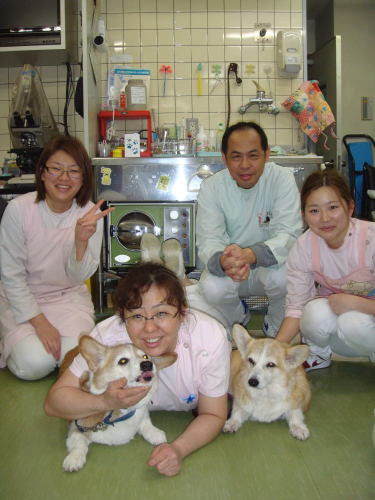 コルクファミリーの頼みの綱、ロン動物病院の先生です。 コルク、朝に血尿しました!びっくり! いつもの膀胱炎? もっと深刻!?と焦りまくり・・・ 病院へおしっこを持っていきました。 結果・・・膀胱炎 それに、ストラバイトも出ていないようで「冷えたのかな?年やし・・・」 それから、触診をしてもらって、脂肪腫をいくつか発見。 私も気づいてはいたのだけど、ミントにもブンブンにもあって、二人は手術したけど ともに良性だったし、あんまり気にしていなかったんだけど 「首の後ろにある物だけ固いから、違う種類かも」と。 膀胱炎が落ち着いたら、手術も勧められたけど、、、 16歳のコルクに全身麻酔をかけて、手術して、弱ったらいやだなぁ 今は何ともないのだし、良いものかもしれないのだし、悪いものなら仕方ないのだし と・・・様子を見ますと、半分、いやほとんど断った。 背骨が曲がってきているのは、数年前にレントゲンを撮った時に、コルクはしっぽの付け根の骨が変形しているのだそうで、そこが痛いのだろうって。 「痛みを抑える非ステロイド性の抗炎症剤を飲みますか?」と提案されたけど それって、ミンチョが長く飲んで、腎臓を悪くした薬だよね・・・ あちらを立てればこちらが立たず・・・ ちょっと様子を見ます・・・とこちらも保留。 まずは、膀胱炎しっかり治さんとね。コルちゃん、頑張れよ! ミンチョの場所によし子先生がはまってくれた! ビビるコルク ママちゃうやん!のブンブン (もっといい顔しろよ!お世話になるんやから!!) 今年も頼みます~~~~