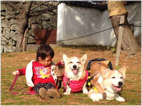 健桃桜母とハリティンママが、ブンブンに会いに来てくれた。 ブンブン、膀胱炎が悪化してたのやけど、最悪やったらそれはそれで来ておいてもらおうって思ってた。 でも、ブンブン回復! お天気もとても良い! はじめは片男波と思っていたけど、番所の鼻公園にお弁当を持っていくことにした。 父さんも合流して、お天気も良く絶景! 桜、エンジェル、チュパは走って可愛い🎵 またまた可愛い女の子にあって嬉しかったね。 ブンブンも風と芝生の匂いの中まったり。 帰りがけに、受付のおっちゃんが、以前にきのくにのオフ会をしたことを覚えてくれていました。 あの時は20匹位のコーギーがいて、圧巻やったって。 コルクもミントもいたね。 今日は本当にありがとう また来ようねの約束