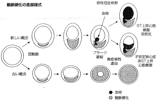 昨日の続き故小渕首相は心臓に血栓ができてそれが脳に飛んで脳梗塞になりました。無言状態はまさにその現れでしたね。上記の場合の要に突然なる場合が殆どです。血管の4分の3位つまらないと症状がでない事が多く自覚症状が出たときにはすでに遅い事が多い昔は血管がだんだん狭くなって詰まると考えられていました。しかし狭心症、脳梗塞になった人を調べてみると10%くらいしか詰まっていない方も多いのです。プラークと呼ばれる血管内にコレステロールを食べて死んでしまった食細胞のプヨプヨの固まりがあります。最近ではこのプラークと呼ばれる血管のなかの動脈硬化の部分が何らかの原因で破綻したそこに血栓とよばれる固まりが出来て血管が完全に詰まったり、あるいは部分的に詰まったりして病気が発症すると、考えられています。ですから気付いた時にはもう遅い?!早め早めの予防を考えましょう!