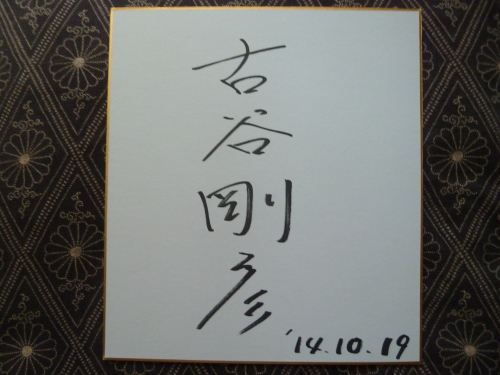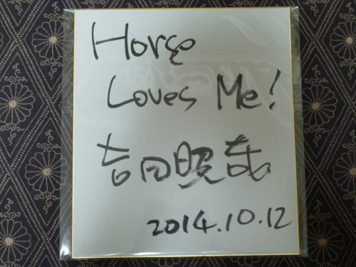 明日は朝9時からお客様と打合せの 多摩の黒酢 です。朝一なので、頭のスイッチが入るようにしないといけません。東京へ来てからは、密度の濃い仕事が多い感じです。さて、本日のブログネタですが、競馬関係者の直筆サインです。グリーンチャンネルの競馬コンシェルジュの古谷剛彦さんです。ホッカイドウ競馬で元所有馬・シルクバーニッシュ(引退)が走っていた時に早くから、その才能に気付いていた方です。