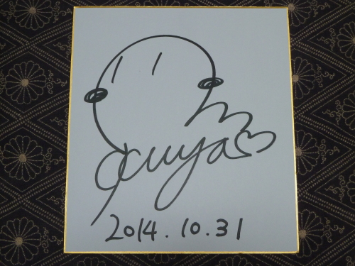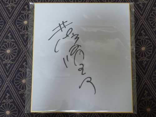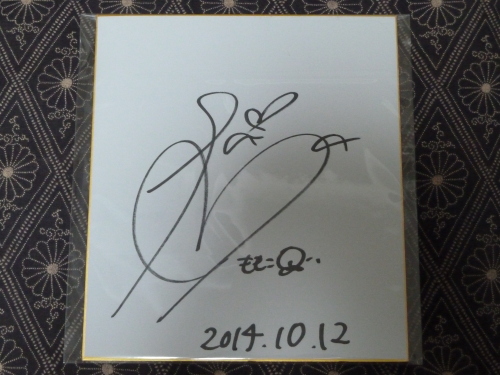 立ち仕事で脹脛(ふくらはぎ)が痛い 多摩の黒酢 です。展示会の説明員で、東京ビックサイトで仕事をしましたが、コンクリート床の上に長時間、立ち仕事でしたので、足がかなり痛いです。「痛い」というより、パンパンに浮腫んで感覚が変です。あと2日間ありますので、明日が山場です。(最終日は惰性です。)乃木坂46が4名、イベントで来てましたが、雨の中、マニアが大勢来てました。(平日の午後に、スーツではなく、私服でカメラ撮影の客です。)さて、今日も競馬関係者の直筆サインです。府中(東京競馬場)で先日、川崎競馬場のイメージガールをしている「たにもも」こと谷桃子さんのトークショーがありました。グラビアアイドルで、元BS11の競馬中継のアシスタントもされていた方です。