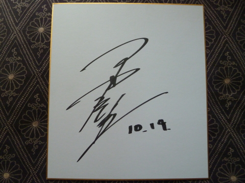 今日は「組織の発足式」(飲み会)の 多摩の黒酢 です。10/1に転勤して来て、展示会などがあって、発足式が今日(10/22)になりました。ただし、ストレスで口内炎が出来ていて、酒がしみる。しみる。ブログネタは、調教師の直筆サインです。鹿戸雄一調教師(JRA)です。東京競馬場では、騎手のサイン入手はあまり上手く出来てませんが、競馬関係者のサインは、関西(京都・阪神)より容易に思います。東京競馬場って、ウイナーズサークルに騎手や馬が出て来るのが京都競馬場や阪神競馬場より遅い感じがします。口取り式から次のレースまで時間が短いので、騎手のサイン入手が難しいです。