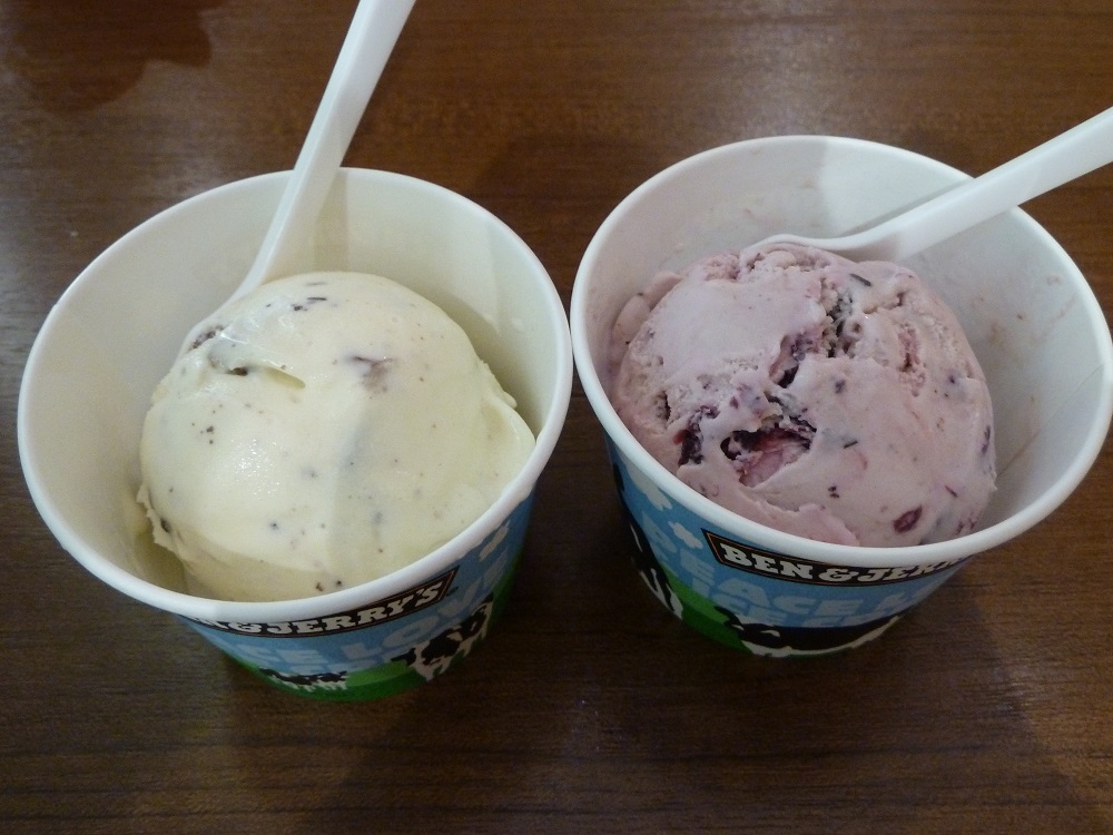 右のサクランボとチョコチップが入っているアイスが美味しかったです。