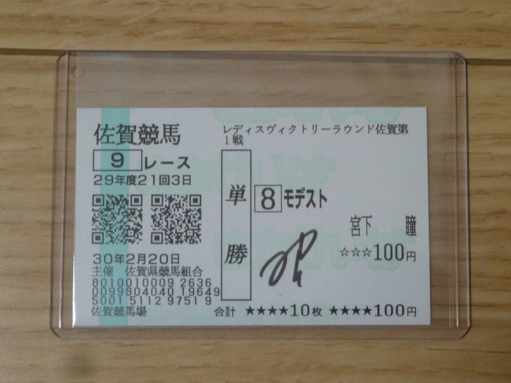宮下瞳騎手 直筆サイン入り馬券(的中)