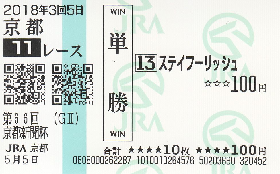 素直に勝つと思ってました。 1枚の切符を「宇宙の力」で手に入れました。