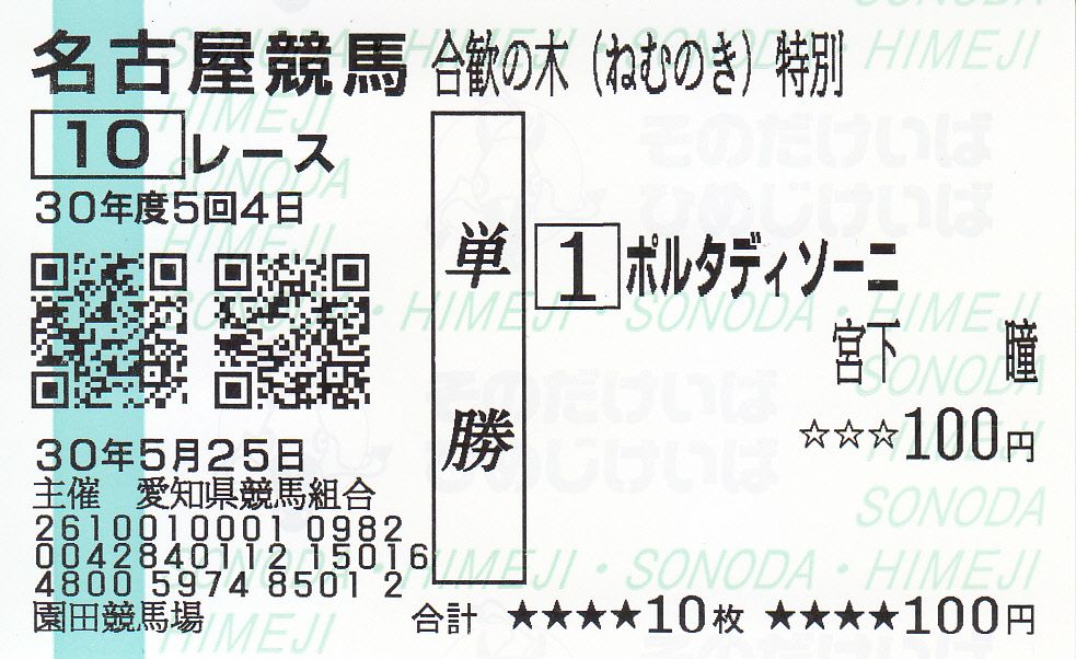 名古屋競馬の馬券も場外発売してましたが、メインレースは4頭立てでした。