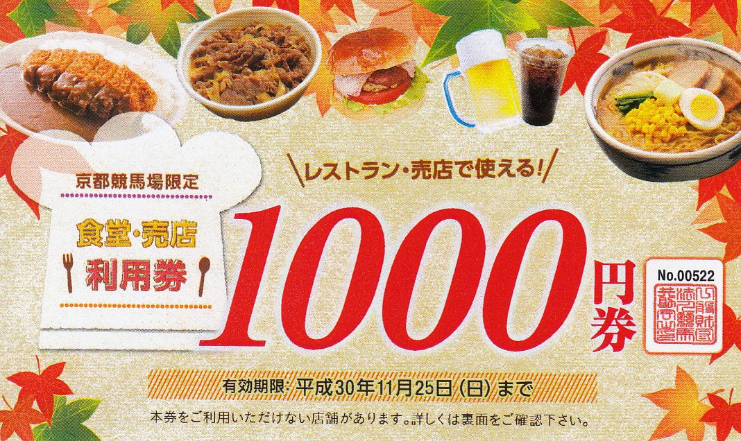 1回抽選できる京都競馬場のお食事券ですが、