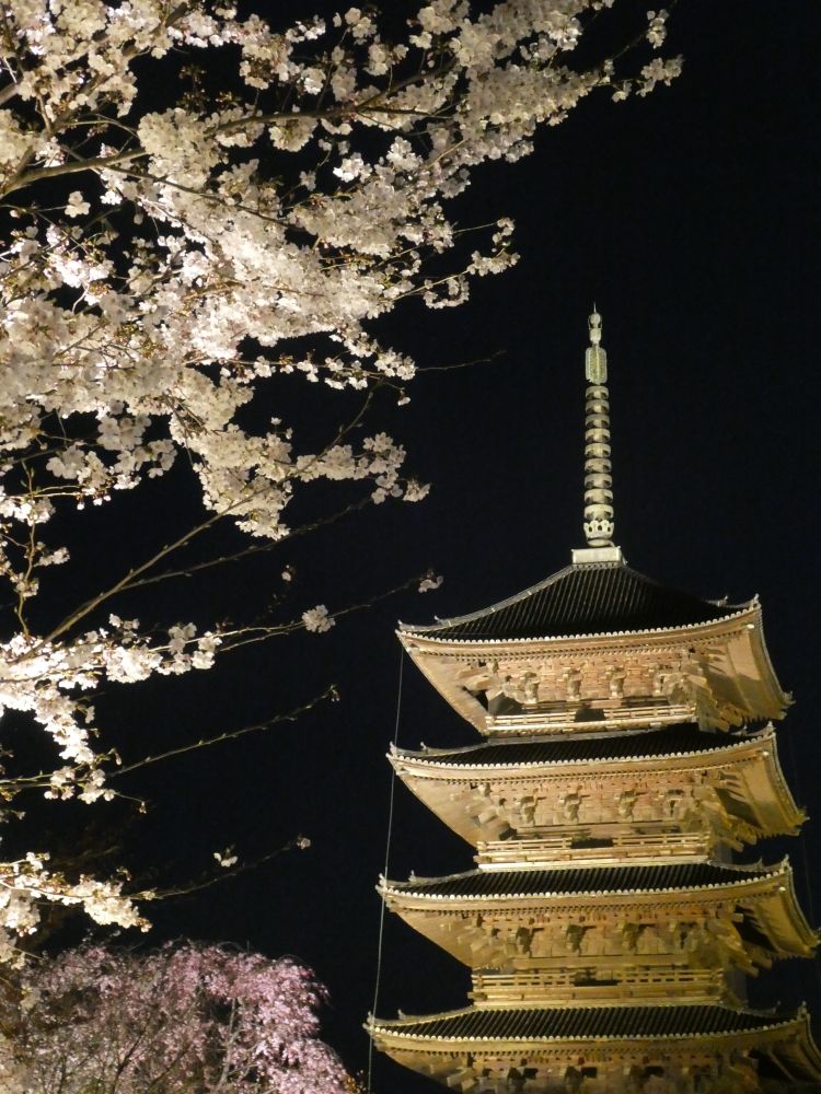 ​東寺(京都市)の夜桜​ です。 東寺は『世界遺産』です。