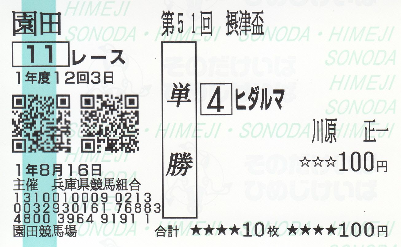 ​​​​​​摂津盃(園田競馬場)は、ヒダルマが12連勝で重賞制覇 の 多摩の黒酢 です。