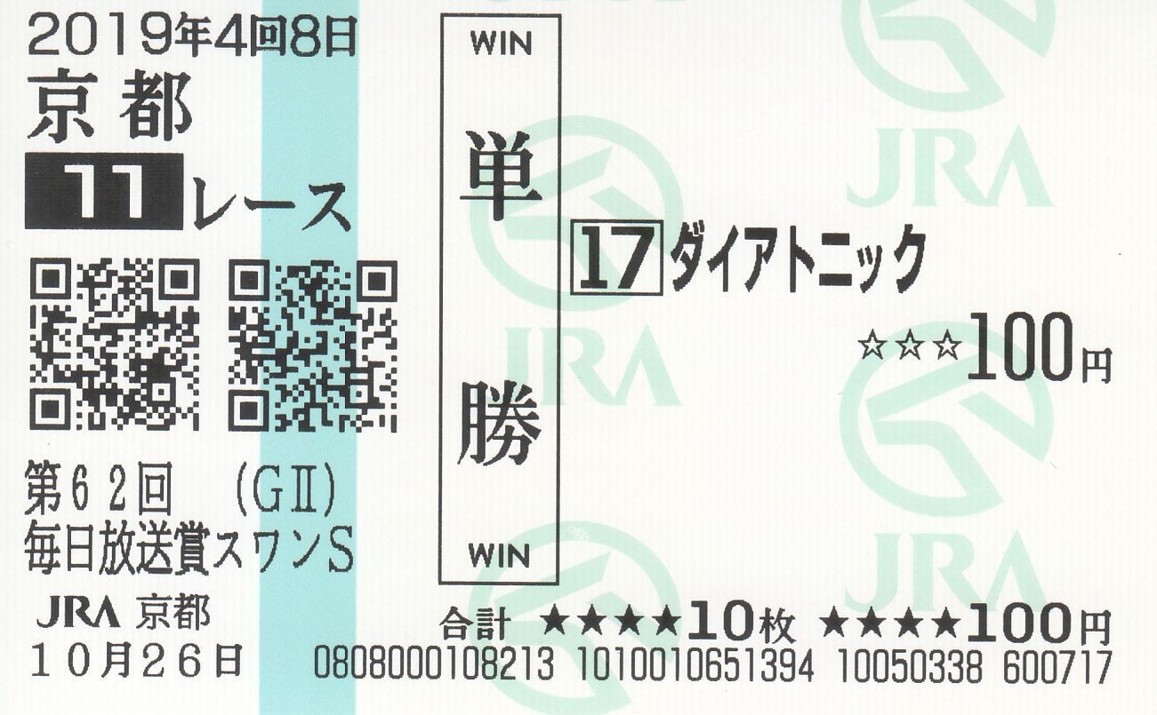まぁ、来年(2020年)のスワンSも阪神開催になりますね。(京都競馬場の耐震工事)
