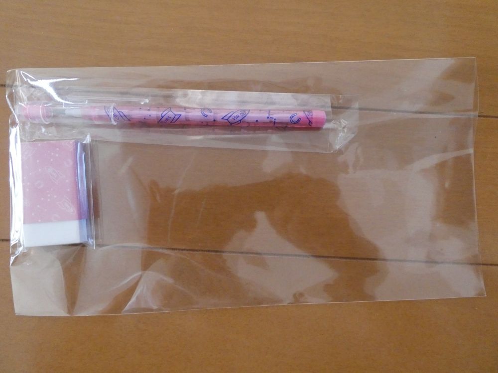 入荷が遅れていた ​5等賞の『ロケット鉛筆+消しゴム(ピンク色)』​ です。大笑い