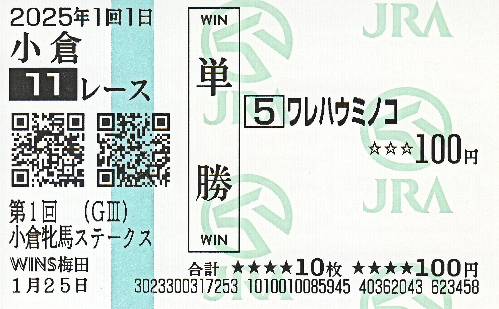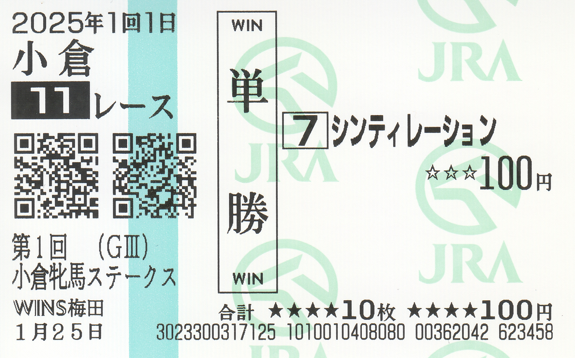 【記念単勝馬券(再掲載)】 ジェンティ… 2025.11.26