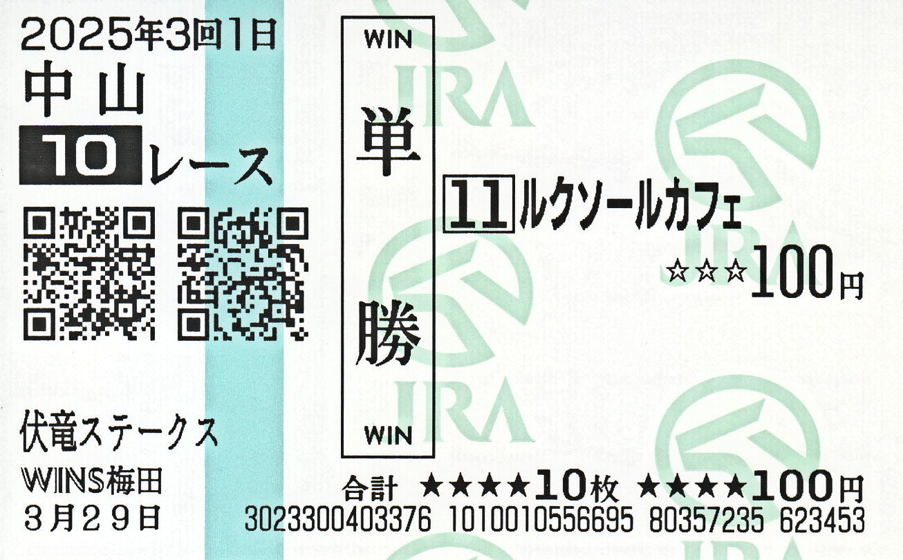 【記念単勝馬券】 ルクソールカフェ(武… 2025.11.19