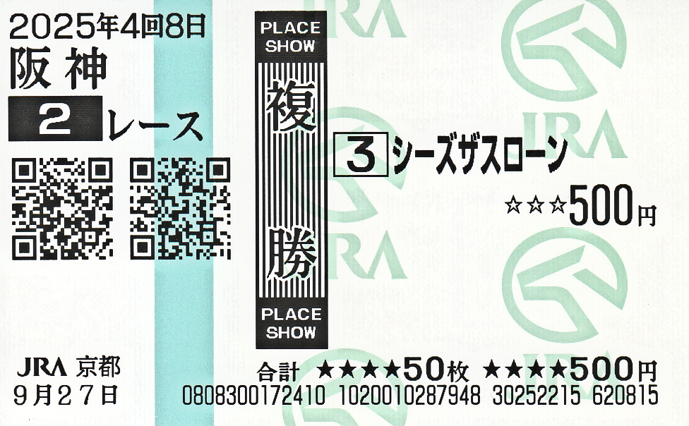 (1着) 配当:1.1倍(50円プラスになりました。)![]()