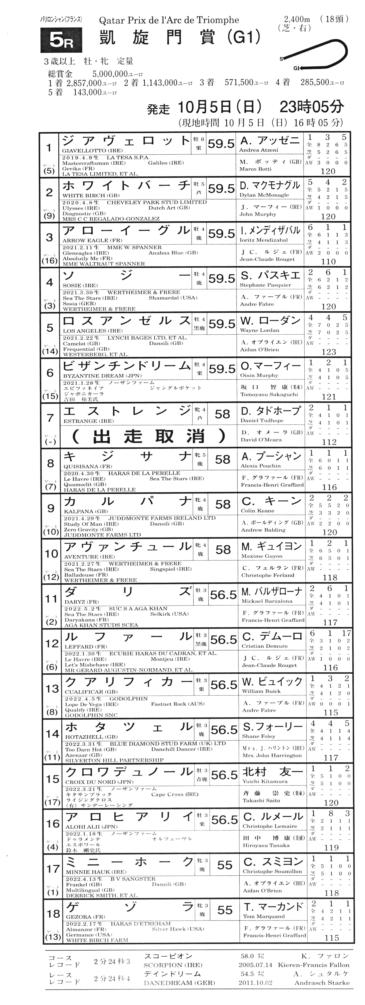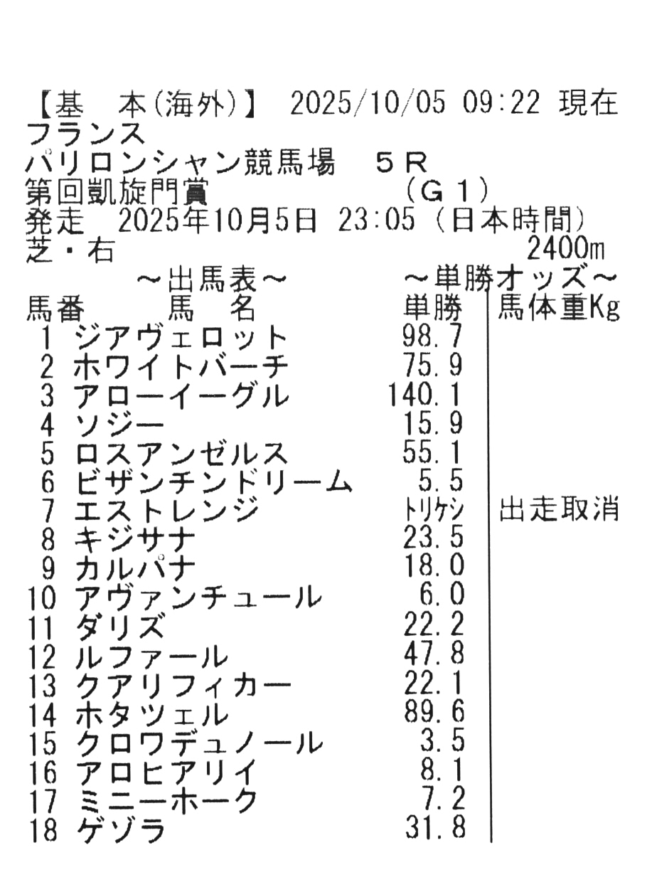 日本時間の10/5深夜に、フランス・パリロンシャン競馬場で開催された