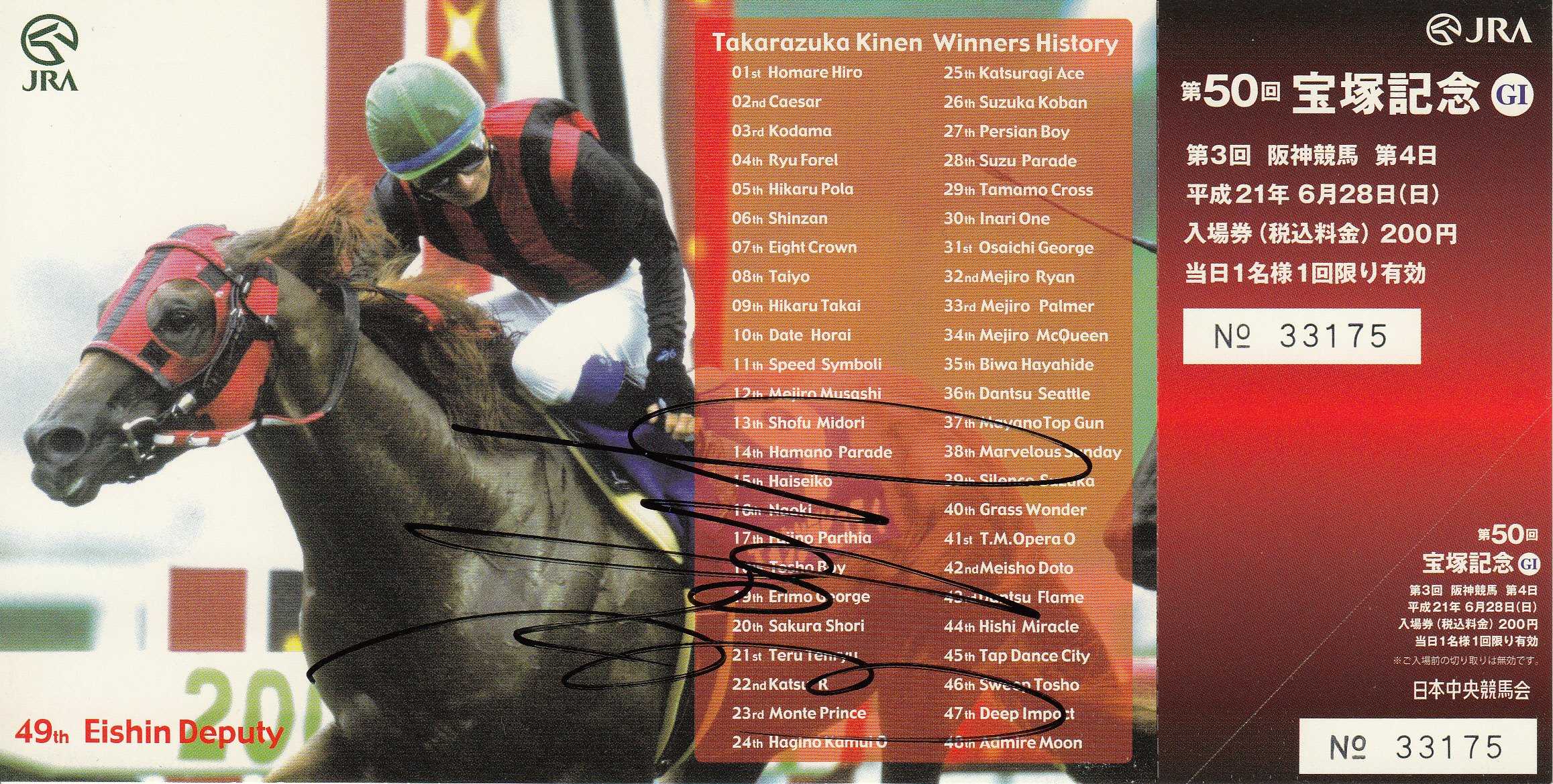 内田博幸騎手サイン入り記念入場券(2009年 宝塚記念)