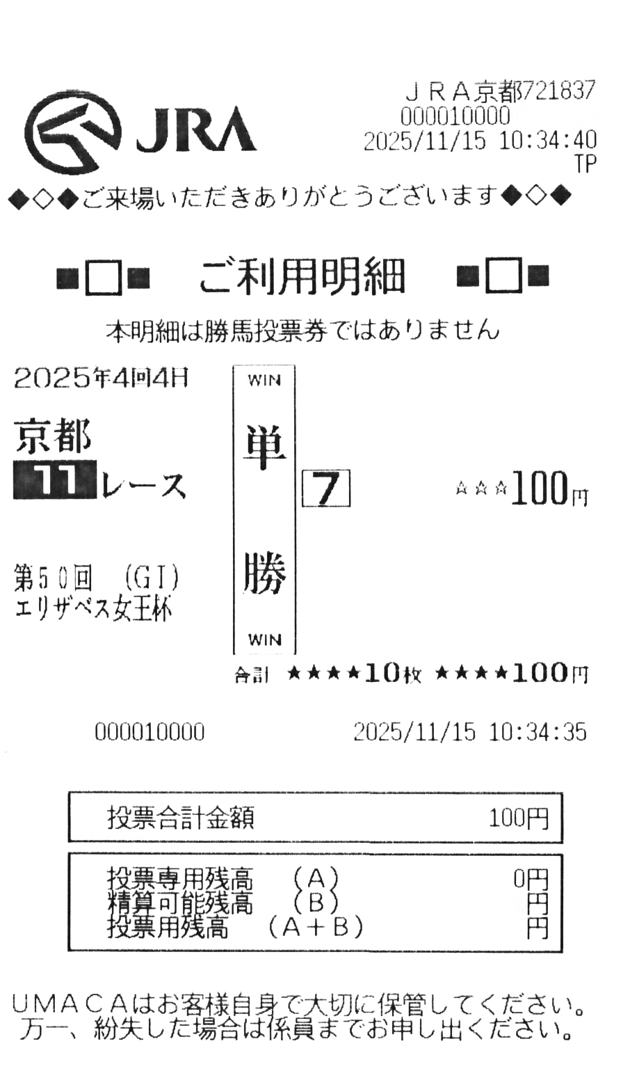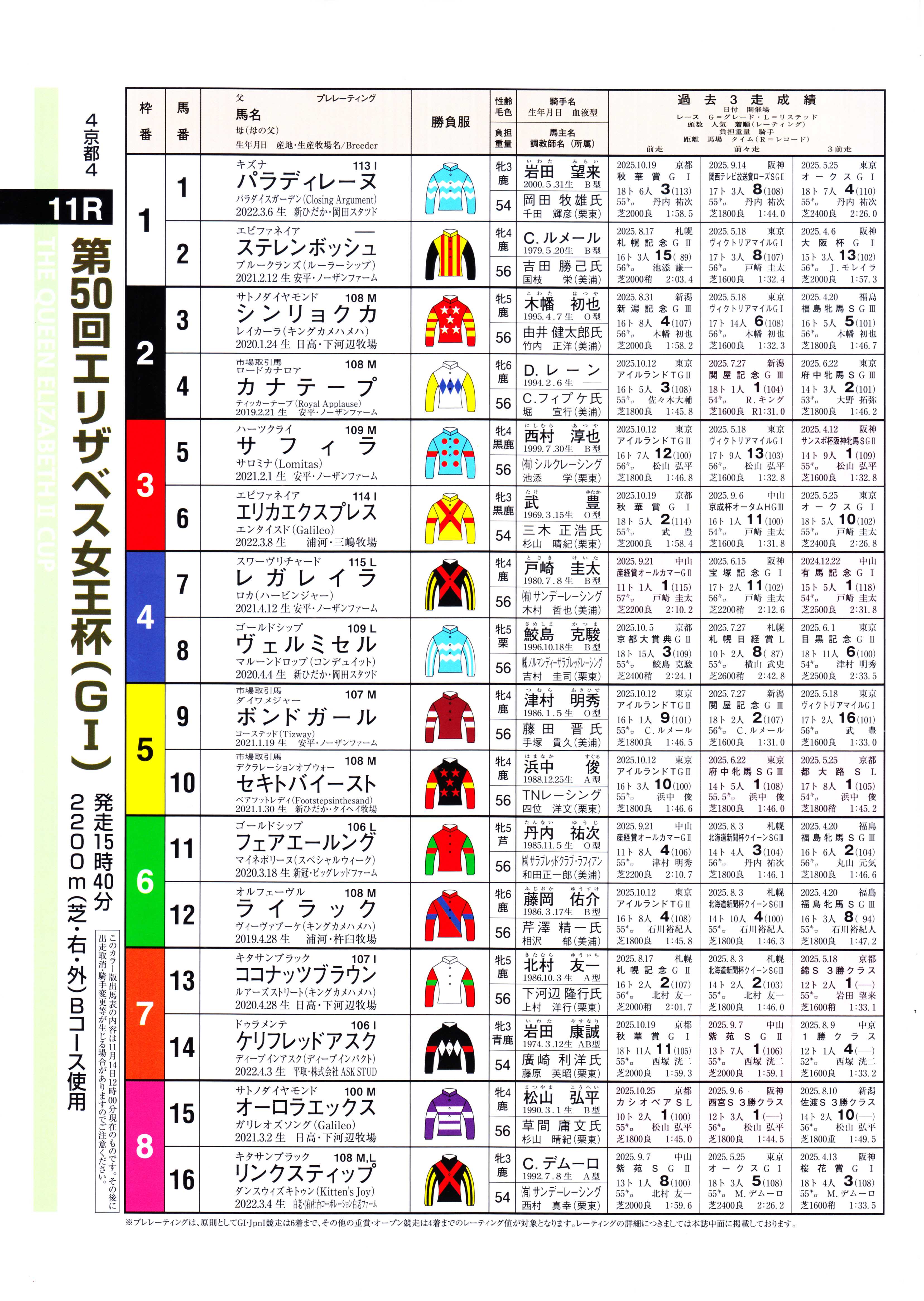 100周年の京都競馬場で、第50回  エリザベス女王杯(G1) ですが、