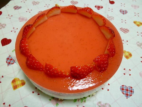 今日の深夜1時前、旦那さんが左手の中指にヤケドして仕事から帰ってきました交替勤務で工場内の熱気が漂う暑い場所で作業していて、切り傷やヤケドはよくあることだとか・・・実際にケガをして帰ってきたのは初めてだったので、驚いてしまいました。氷水で冷やして冷やしてだいぶ痛みも治まったようで、隣の部屋で寝ていますもうすぐ出勤だから起こしてご飯を食べさせないと早く指が治ってケガをしないで帰ってくることを祈る毎日です(-m-)” 先日、私が勤めていた会社の同僚が家へ来てくれました。その時に作ったケーキです「シャンティ」苺ゼリー・苺ムース・練乳入りムースをスポンジで挟んでます。ピンクと白の層が春らしくてカワイイ
