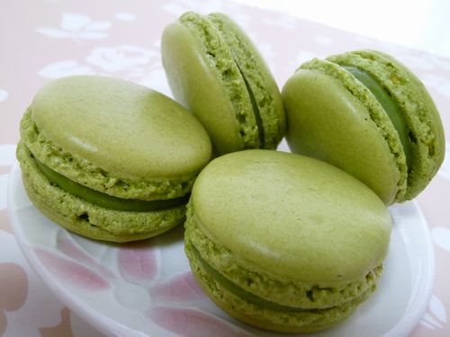 ショコラに続き今回は抹茶ですコロンとした形を目指して今回はマカロナージュを気持ち控えめにしてみました。出来上がりがコチラ。。。フフフ。。。うまく出来てるように見えますか??実はコレ、マカロンの中身がほぼありません(涙)大きな空洞が出来た上に焼きが甘くて、クッキングシートからはがす際、生地がシートにくっついてしましました(^^;;マシなマカロンで抹茶のガナッシュを挟んでみましたが、大量に挟み過ぎて旦那さんに「甘過ぎて糖尿になりそう(-_-;))と言われてしまいました(;へ:)クリームとのバランスも大切です。思うように出来るには練習練習♪考えすぎて、また夢にマカロンが登場しそうです(・Θ・;)