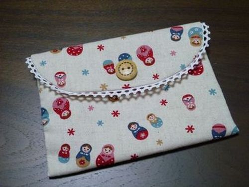 お財布を長財布に変えたら、、、化粧ポーチが鞄に入らなくなってしましました長財布って結構場所とるんですよね・・・なので、少し小さめでマチも少ないポーチを作りました裏地はいちごの生地でこちらはシュシュ。母からの頼まれ物。買うと結構高いんですよね(^^;; 余り布で作りました☆参考にした本☆半日でできちゃう小さな布のこもの