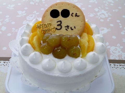 友達の子供のバースデーケーキを作りましたデコレーションケーキはそうそう作る機会がないので、今回私からお願いして作らせてもらいました。特にこんなケーキがいい!と要望はなかったので、生クリームのフルーツケーキにしましたフルーツは間に黄桃、トップに黄桃・キウイ・ブドウを飾りました。大きな円形で抜いて焼いたクッキーにチョコペンで書いてドドーンと真ん中に(^^)ナッペは慣れてないとやっぱり難しいなぁ(Θ_Θ;)触りすぎるとクリームボソボソになっちゃうし・・・友達の子供は出来上がりをとっても楽しみにしていてくれてたので、何が何でも失敗できない(-"-;A ...だって誕生日ケーキだもんねぇ。。。無事にお届けできて、とっても喜んでくれたそう(´▽`) 口元にクリームいっぱいつけて食べてくれてる写メを友達が送ってくれましたよかったよかった誕生日ケーキを楽しみにしてたのは、友達の子供ともう1人・・・うちの旦那さん・・・(-_-;)私が誰かのために作っても自分の食べる分があるのが当然だと思ってるのですよ。今回も自分から「俺のはフルーツいらないから。クリームだけの真っ白いので。」と言ってきてました。なので、お届け用の18cmと旦那さん用の15cmのケーキを製作。まぁ、ナッペの練習を先に出来てよかったし、新しい口金の絞り出し練習もしたかったからよかったのだけど・・・何の記念日でもないのにホールのケーキ食べれるなんて贅沢よねぇ(- -) いつも楽しみにしてて、作り甲斐はありますけどね(´m`)
