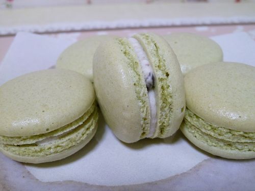 今日も朝から暑い!日差しがキツイです久しぶりにマカロンを作りました。久しぶりのせいか、1回目は見事に失敗(≡д≡) 次の日にリベンジしました『抹茶のマカロン』「ロールケーキ マカロン バウムクーヘン」参照。1回目は全く膨らまず、ピエも出ず、最悪な出来上がり(×_×)2回目はちょっと慎重に、より丁寧に・・・すると、今までで1番キレイに出来ました同じ配合の生地でここまで違うんだもんなぁ。。。メレンゲの状態、乾燥の見極め、焼きの加減、コツが満載のマカロン。まだまだ練習が必要です“〆( ̄  ̄*) 中にはバタークリームに粒餡を混ぜたものを挟みました。この組み合わせ、好きかも(*^^*) ☆一流パティシエの技法のコツが満載☆ ロールケーキ マカロン バウムクーヘン