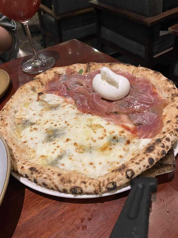 ピザはハーフ&ハーフにして、生ハムとブラータチーズのコンビにしたよ〜!🥓🧀