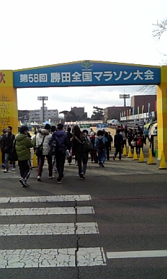 年明け第一弾のフルマラソン走ってきました地元の伝統ある大会『勝田マラソン』を走ってきました今年は1万7千人ものランナーが参加したとのことで会場は満員御礼ホントマラソンブームだなぁって・・・今回はクラブの方のお世話になっている整体院の先生がお店を開放してくださりトイレの苦労もなくスタートまでストレスなく待機できました(礼 それで・・レースの方ですが、勝田は自分にとって源のいい大会でもありモチベーションもする大会ですが・・・今月の練習内容や体調から・・サブスリーを狙えるまでコンディションは整っておらず、とりあえずロング練習の位置づけでスタートラインへ立ちました。先日のブログにもしましたが、入りの5キロの余裕度でペースを決めることにしました 午前11時一斉にスタート・・・なんか脚が重い心拍数もあれ高いペースはどのくらいやろ1キロ通過4分32秒、渋滞からのロスもあるからこんなもんか??すぐ前に知り合いのMさんが・・ハーフは俺の方が速いのですがフルは一度も勝ったことのない方。。少しストーカーしようと後ろへぴたり5キロ通過・・・21’33”10キロ通過・・43’04”(21’31”)15キロ通過・・1:04’30”(21’26”)Mさんはきっちり同じようなLapを刻み込んでくれています。村松(14キロ)の坂で少し離されました。自分的には上りは頑張らないと決めていたので想定内。。この後は見える範囲で着いていきました。でも17キロから若干ペースして見えなくなる20キロ通過・・1:26’14”(21’44”)で・・ハーフは1時間31分でした。こっから後半落ち込みを減らしたいと思ったのですが、脚の動きからしてちょっとやばいかな~・・Mさんを追っかけたツケがなんとなく脚へ。。実は走る前のイメージとして・・今の状態では5キロ22分台のイーブンでという選択もあったのですが、Mさんに付いていければ確実に3時間一桁前半台で走りきれるという期待もあり欲が案の定Mさんは3時間2分台で総合入賞されました。25キロ通過・・1:48’49”(22’35”)ハーフ以降脚の動きが鈍るが、無理せず頑張らない走法。心拍数も想定内の範囲で押さえる。ペースも明らかに落ちているとわかるけど後半の大失速予防と我慢我慢。。この辺は・・NAHAマラソンの時のFコーチの走りが生かされている。上りも頑張らない走法もFコーチのお陰です。30キロ通過・・2:12’18”(23’29”)30キロ手前でクラブ仲間のHさんに追いつかれる。Hさんはかなり抑え気味で練習レースとして走っているので、かなり余裕がありそう。35キロ通過・・2:36’34”(24’16”)30キロ以降・・坂道の区間がいくつかあったので、意識的にペースを落とし頑張らない走法(笑)40キロ通過・・3:00”04”(23’30”)坂道区間を過ぎたあたりから若干ペース脚は疲れていたけど、前のランナーを次々とパスできていたから疲れ以上に、やったるでぇっていう気持ちで走れてました。ラスト2.195キロ10’18”記録・・3時間10分22秒あれま~2007年の『つくばマラソン』以来の自己ベストを更新してしまいました。僅か46秒ですが、更新できましたこれまでサブスリーを意識しチャレンジして後半撃沈し・・なかなか記録更新できなかったのですが、今回2年ぶりに更新しました。あまり欲を出さずに走ったからかな????あとトイレ休憩もなかったのも大きいかも(爆) 次は着実に3時間一桁台を狙いたいと思います最終的にはサブスリーですが、まずは自分のベストを積み重ねていくことを考えてチャレンジしていきたいと・・今年はコツコツ進化していきたいと思います。 応援してくださった皆様ありがとうございましたm(__)m
