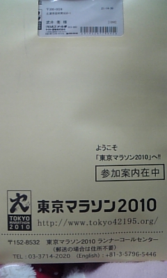 またまたお久しぶりで~すって最近ブログの更新が週1か??え??もっと??気まぐれで更新してるので気付いたらお越しください(爆) 今日☆招待状が届きましたはい☆東京マラソンの参加案内が届きました。実は・・今回で4回目の出場となります。。運よく第1回目から出場させていただいておりますm(__)m極稀なラッキーなランナーかもしれませんが、自分以外で同じように4回出場のランナーさんも知っているので極少数ではいるのかな?って・・でも・・いまだ出場されていない方にはすんまへんm(__)mと言うしかないでしょうか???で・・前回は超体調不良で出場し・30キロでDNFでした。せっかく出たのにDNFとはちと心痛みますが・・もうどうしようもない状況でしたのでお許しください。。それで・・今回の東京マラソンは・・完走とコースベスト狙いで頑張ります!!走らせてもらえることに感謝です!! で・・・その前に明日は『勝田マラソン』です。。これまで勝田マラソンは自分にとって節目のレースであり、いい想い出を残せたレースでもあります。初サブフォー・・・病からの復活レース(フル)・・などなど・・勝田は俺にとって結果以上に頑張れたレースでした。なので・・明日は入りの5キロの余裕度でペースを決めます。コースベストか?自己ベストか?それともサブスリーか???最初の5キロでその後のペースは決まり結果も????では・・勝田の風になってきま~す