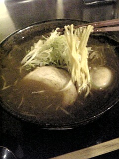 もしかすると1年ぶりでしょうか?このラーメンとの再会豚骨しょうゆ味に・大根おろしと梅干入りのこのラーメン前回は本店?の千代田店で食しましたが今回は支店のつくば店にて初訪問(笑)18時半過ぎでしたが、かなり店は繁盛してましたよ。千代田店よりは店の規模は大きいかな?あと綺麗かな?率直に・・あれ?っていうのが俺の感想でした。本店で食べた同メニューの方が美味しかったような?それとも・・この後(本店以降)に色んなラーメン屋さんで食べたから味に肥えた???麺は茹で過ぎで硬麺の俺にはマイナス・・それから味のインパクトも・・豚骨ベースでちょい脂っこさを大根おろしと梅干で中和して・・お!?いいじゃ~ん!!っと感じたあの?感動?がなかったんですよね。。値段は¥650を考えると・・今のご時世☆このレベルでも十分OK!かも・・で・・今月☆昨年いばらきのRDBでNo1に輝いた古河の『麺堂 稲葉』で『鶏そば』と『鶏つけ麺』を食べてきたいと考えてます。渡良瀬遊水地でレースがあるので・・せっかく行くからには・・No1のラーメンを食さないと!